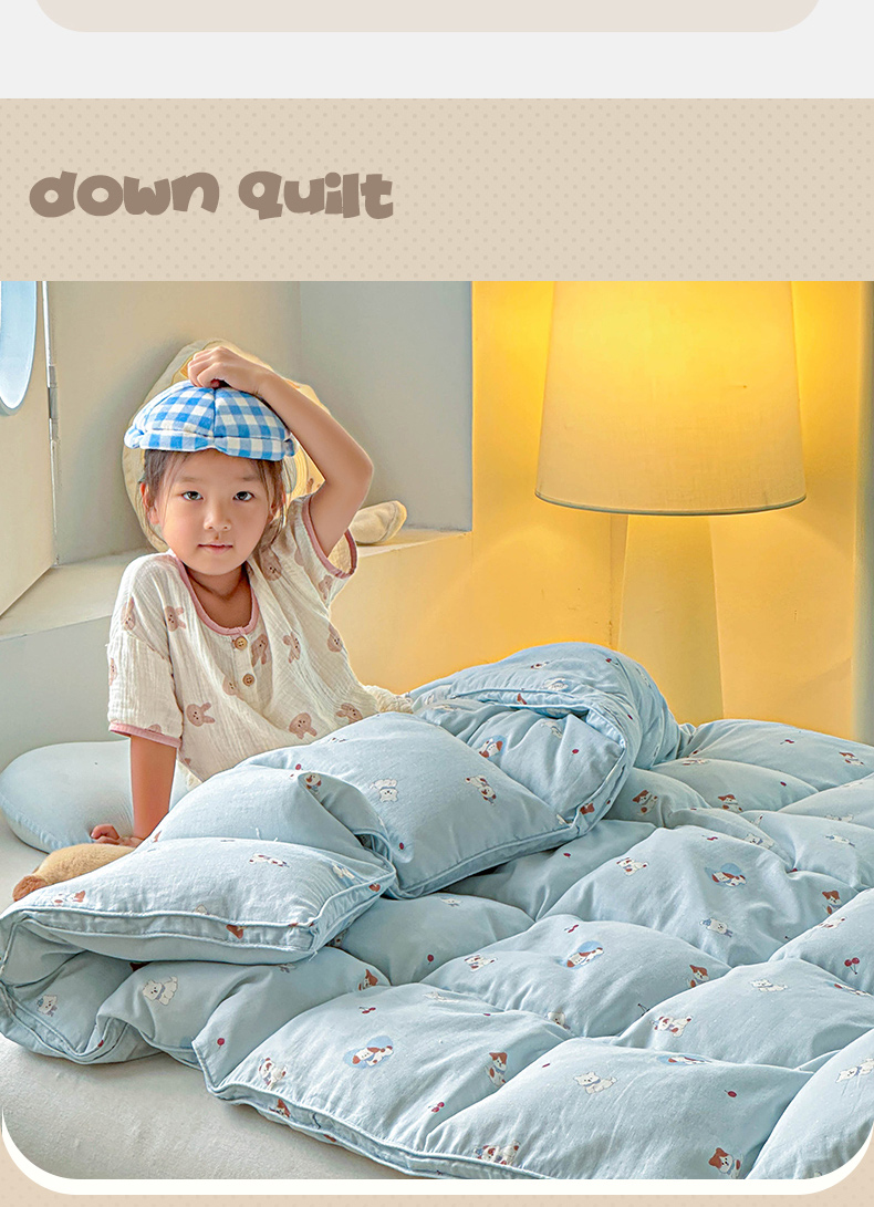 (总)暖羽屋羽绒馆 2025新款儿童纯棉鹅绒丝被芯60s卡通学生婴幼儿园1.2米羽绒被子1.5米宿舍羽绒冬被,饼干小熊,青青小兔,时尚八宝