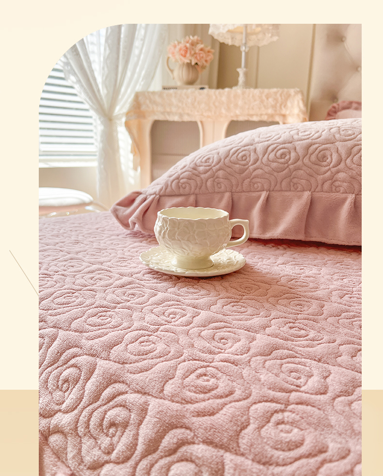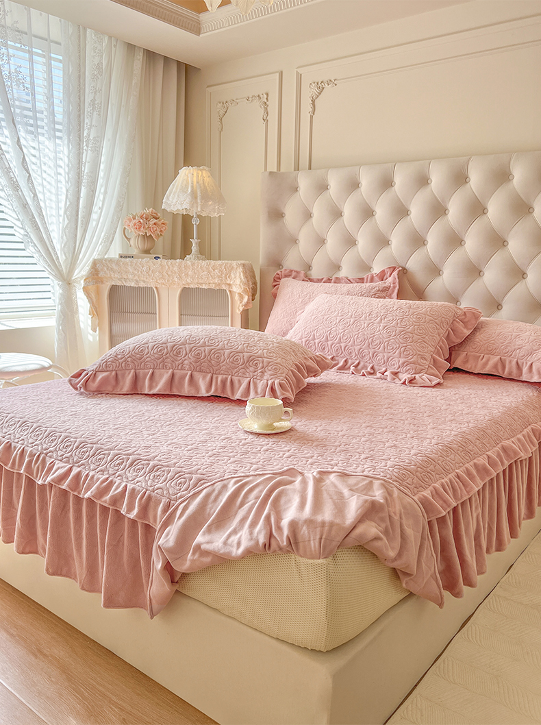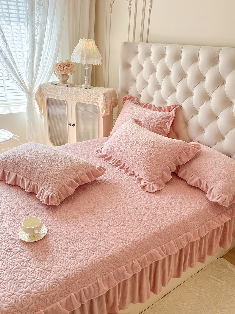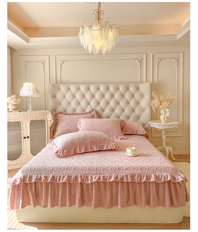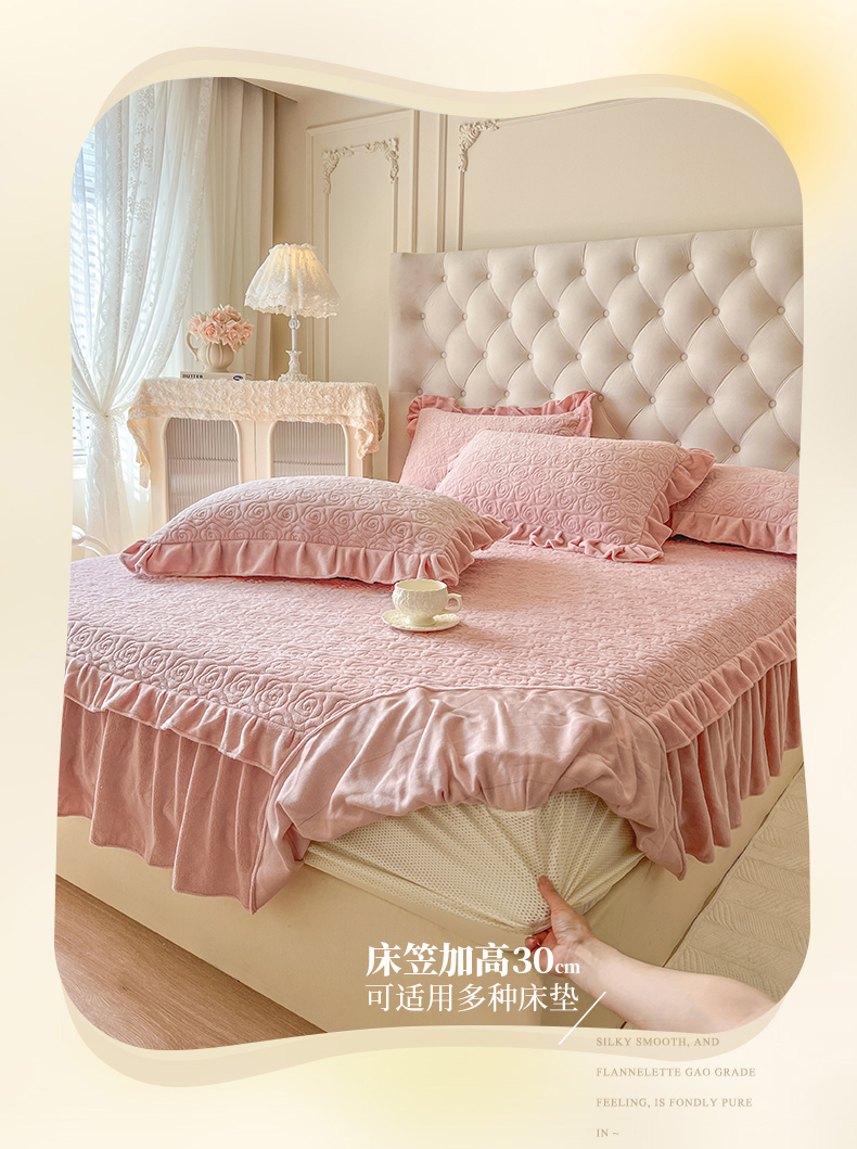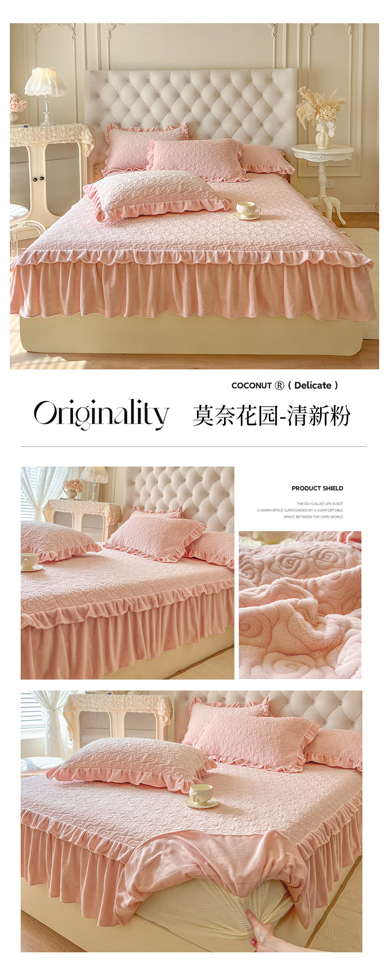 恋尚 2025新款加厚牛奶绒保暖床笠式床裙单品床裙床裙单件-莫奈花园(床裙控价130起) 莫奈花园-蜜桃粉
