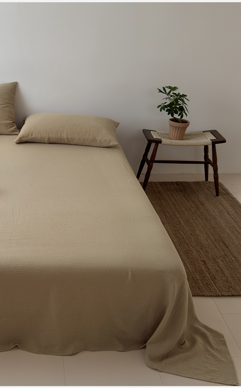 玖弘家居 2025新款软糯皱皱纱单品床单系列 奶白