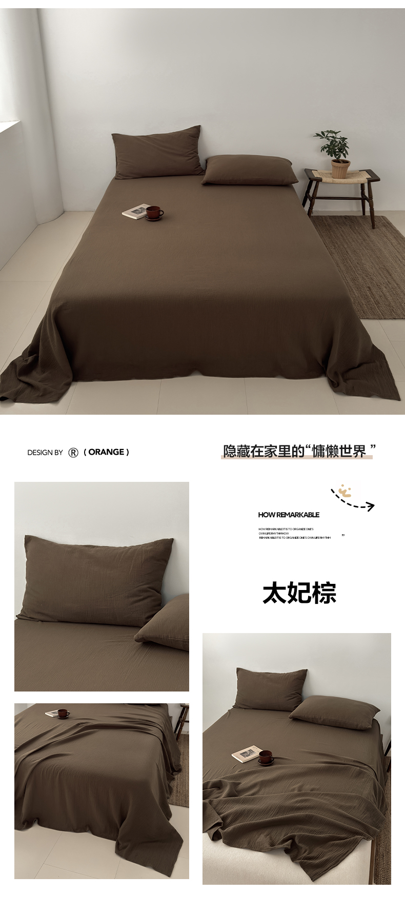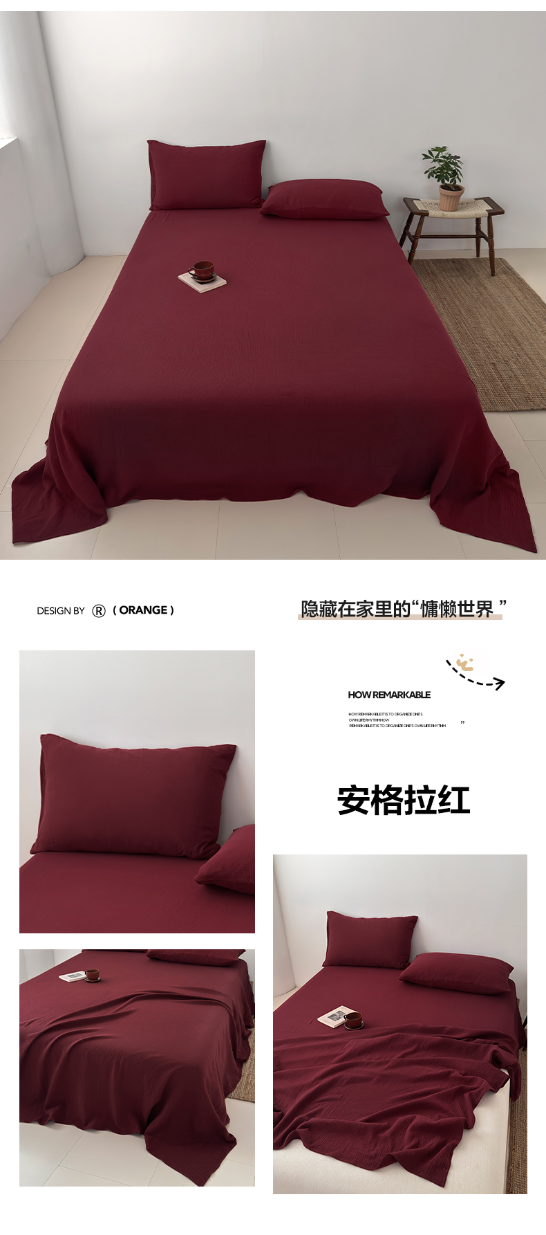 (总)玖弘家居 2025新款软糯皱皱纱单品床单系列,安格拉红,香芋紫,巧克力棕,太妃棕,杏仁,橄榄绿,奶白,黑巧,燕麦