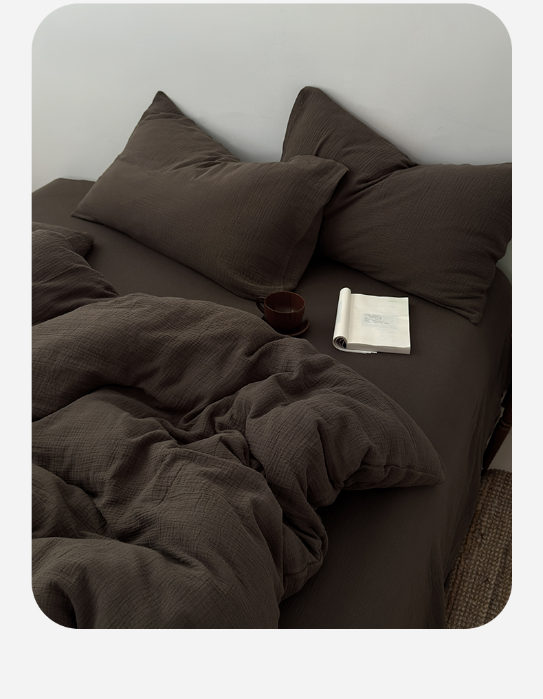 (总)玖弘家居 2025新款软糯皱皱纱单品被套系列,安哥拉红,黑巧,燕麦,杏仁,巧克力棕,奶白,太妃棕,橄榄绿,芋紫,组合
