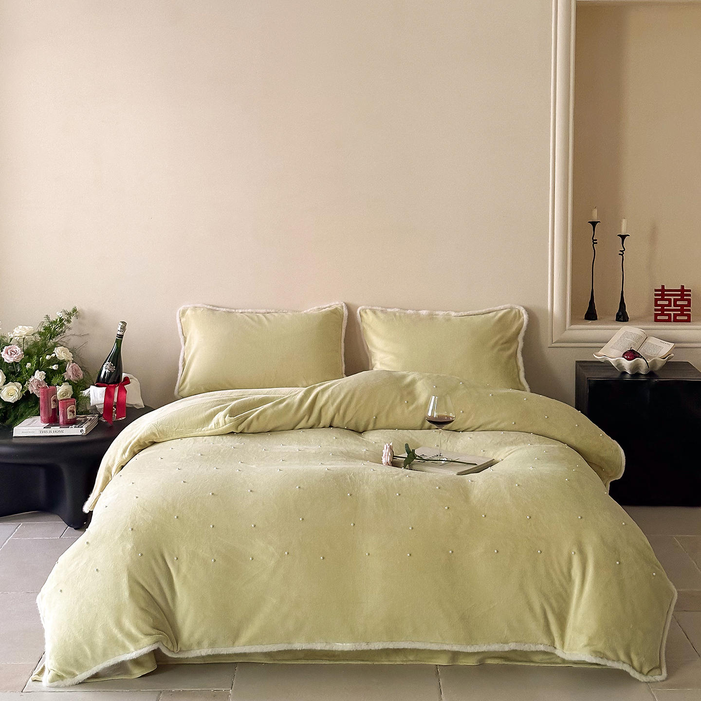 (总)西西家居 2026新款100S长绒棉纯棉刺绣四件套-家有囍事(含精致红色礼盒),家有囍事