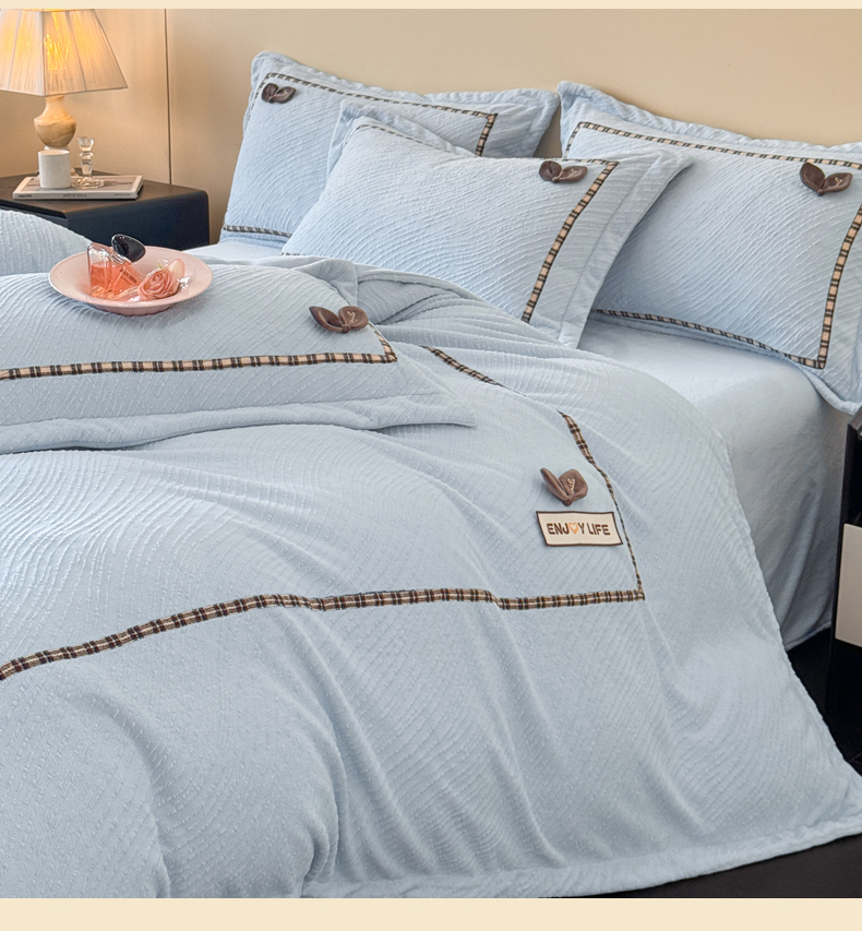 商品名称:慕木家纺 2025新款牛奶绒雕花织带款梦巢系列四件套 梦巢-星空蓝