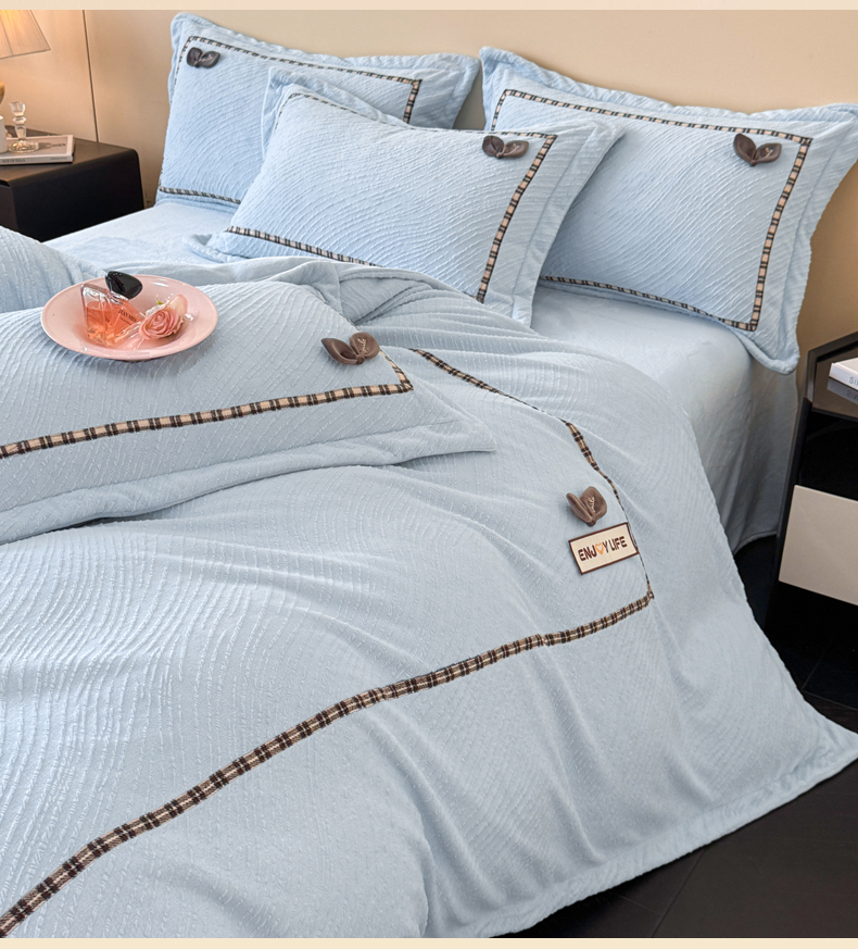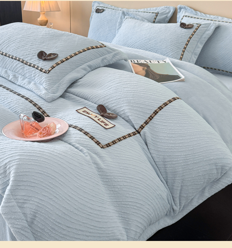 慕木家纺 2025新款牛奶绒雕花织带款梦巢系列四件套 梦巢-星空蓝