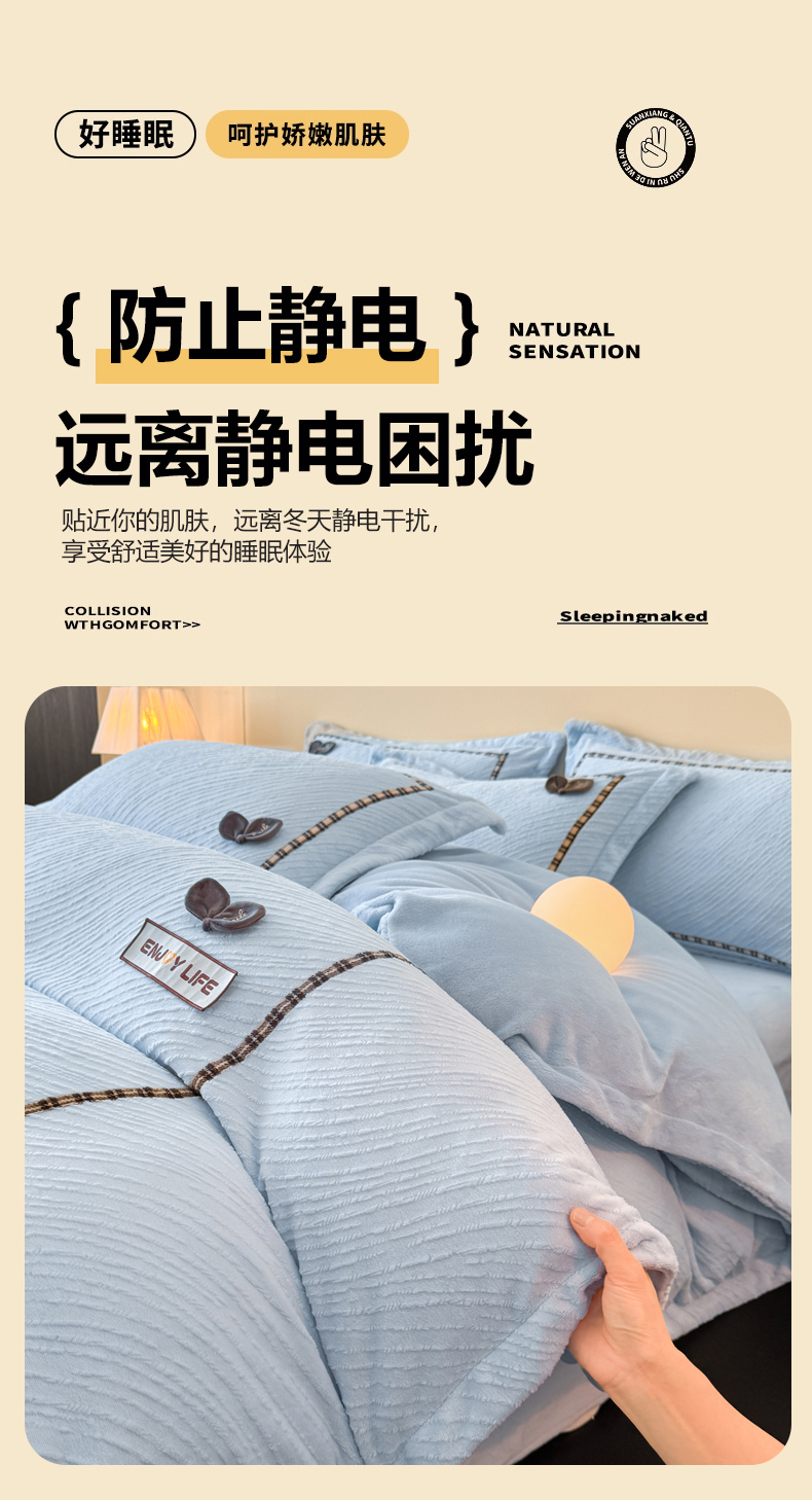 (总)慕木家纺 2025新款高克重简约无印风牛奶绒双拼四件套,宾利蓝+浅灰,米驼+奶茶咖,浅灰+米金,双拼套件-豆沙+灰