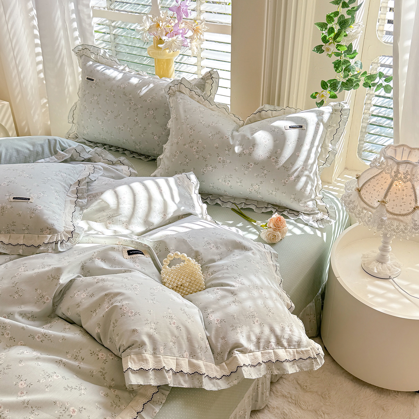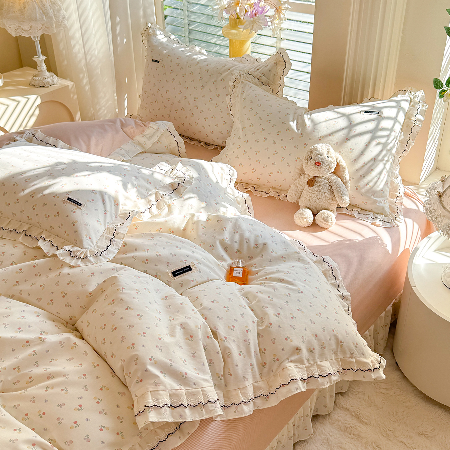 商品名称:艾唯希家纺 2025新款全棉双层花边四件套纯棉小碎花10个花型-花边系列 花艺漫漫