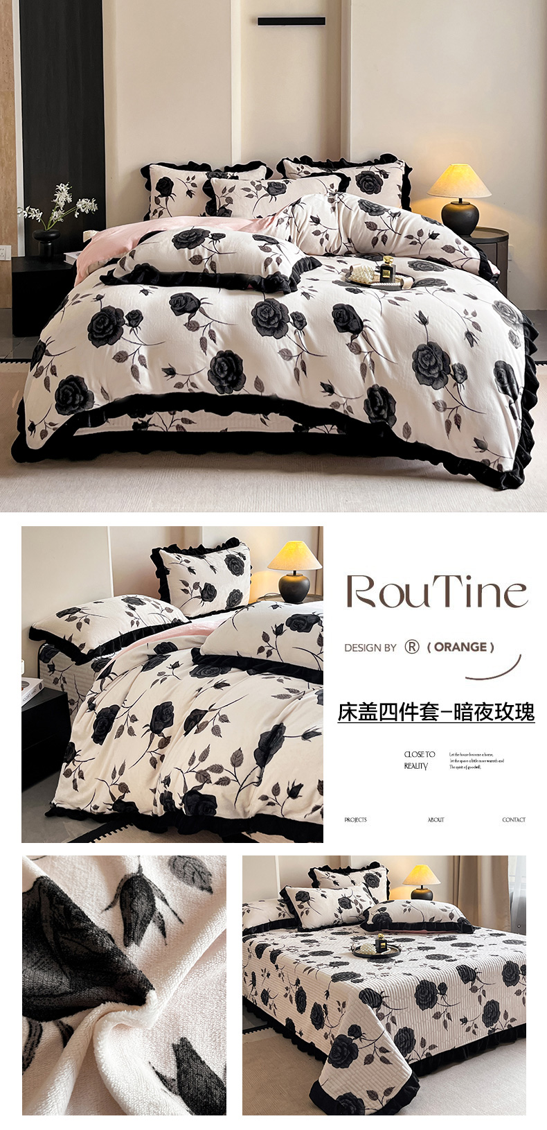 当前位置: 91家纺网 > 商品网购 > 床品套件 > 四件套 > 牛奶绒四件套 > 安哆啦家纺 2025新款法式赫本风牛奶绒床盖四件套 玫瑰的诗