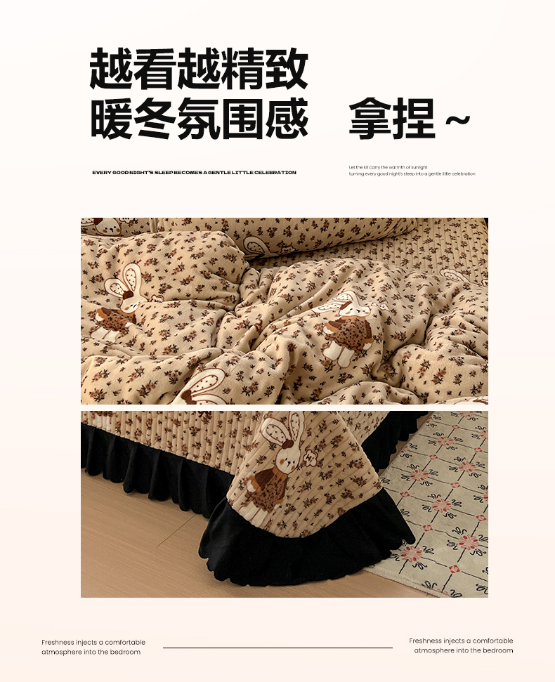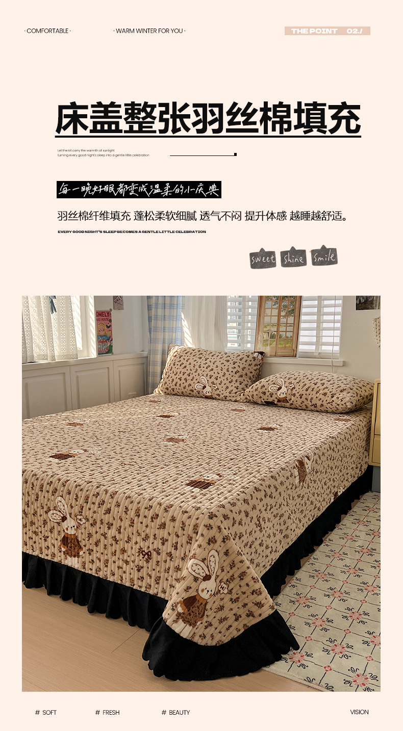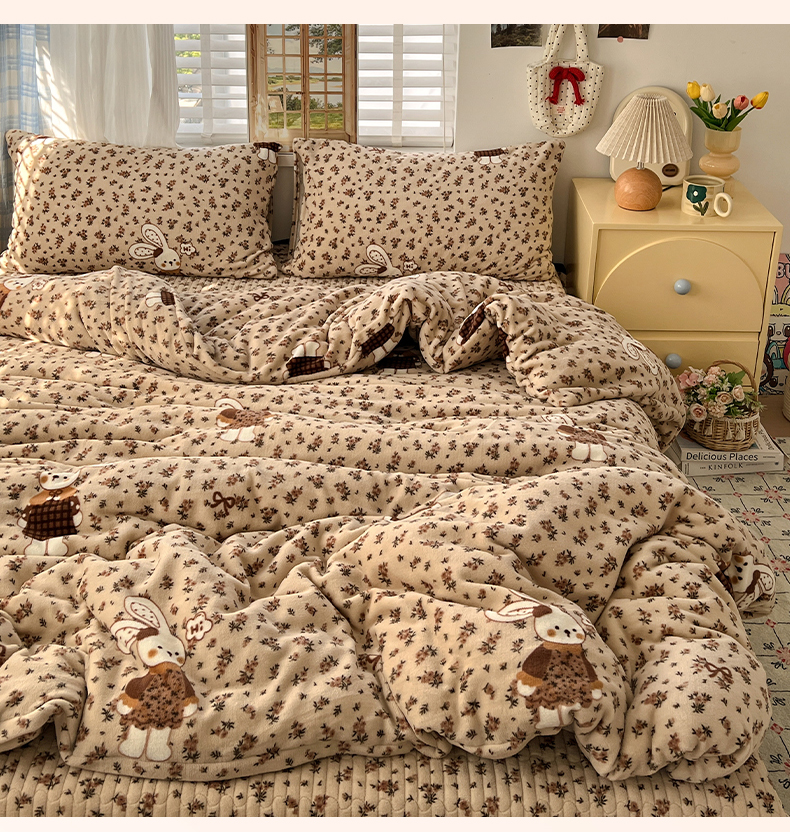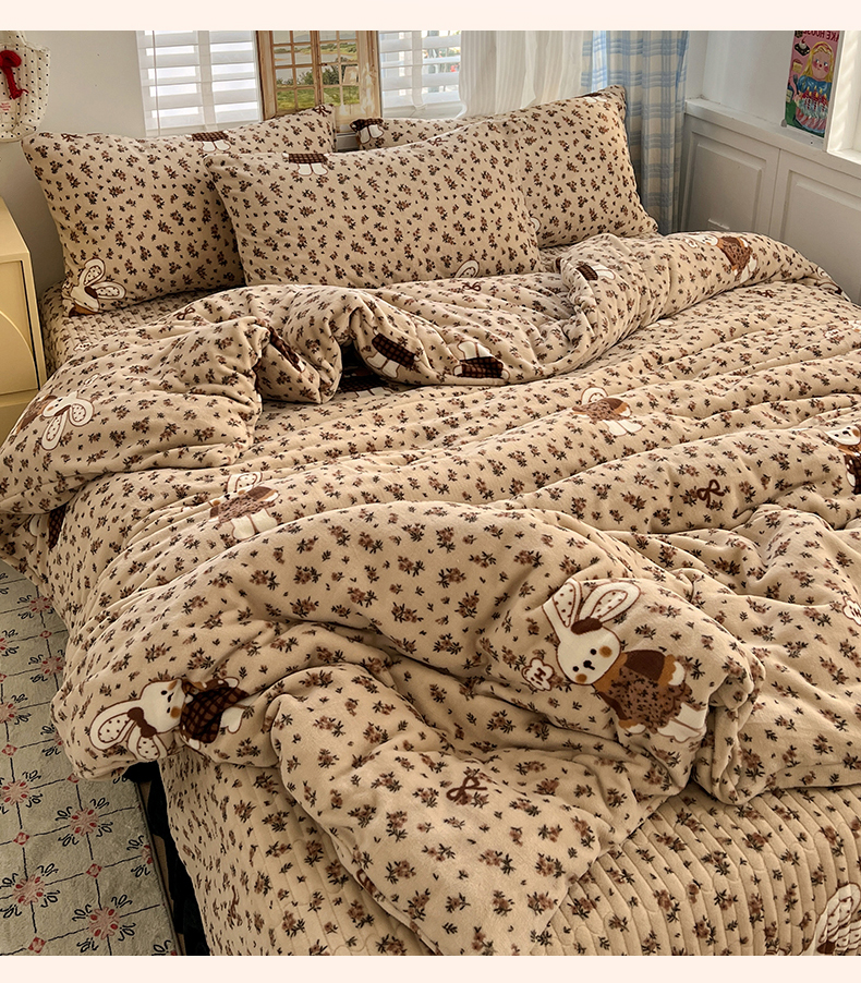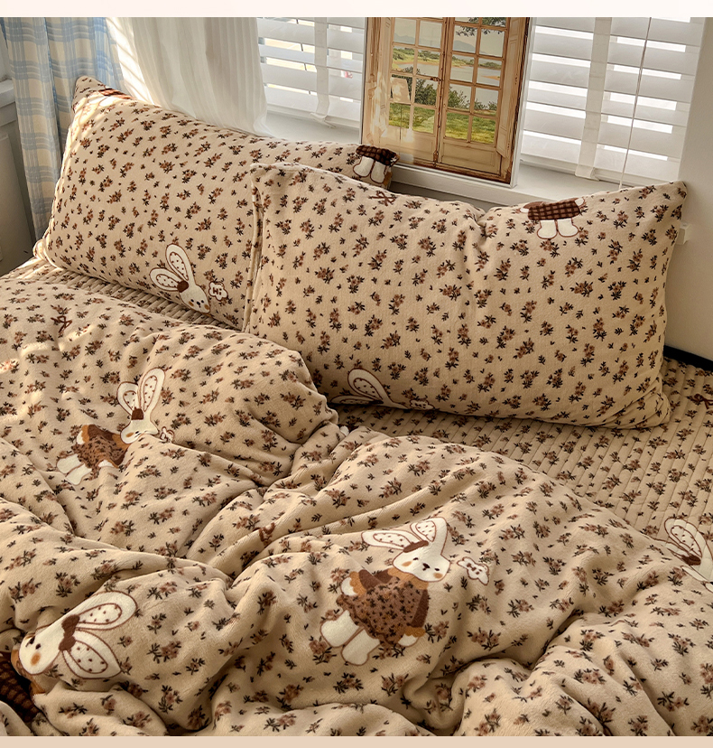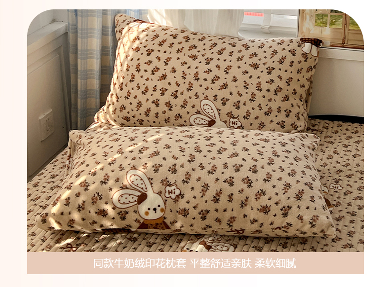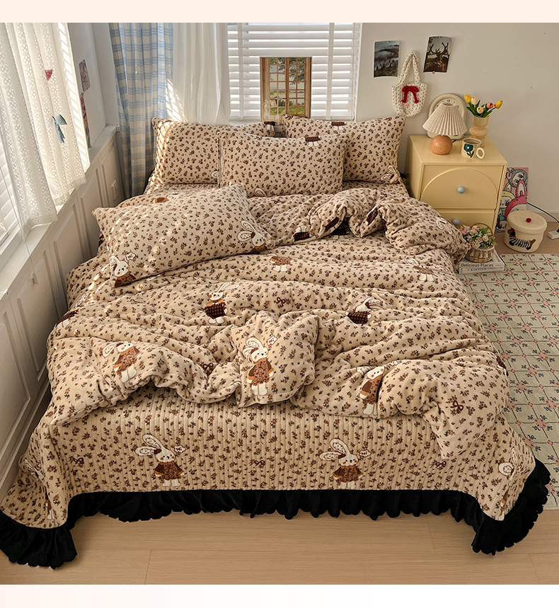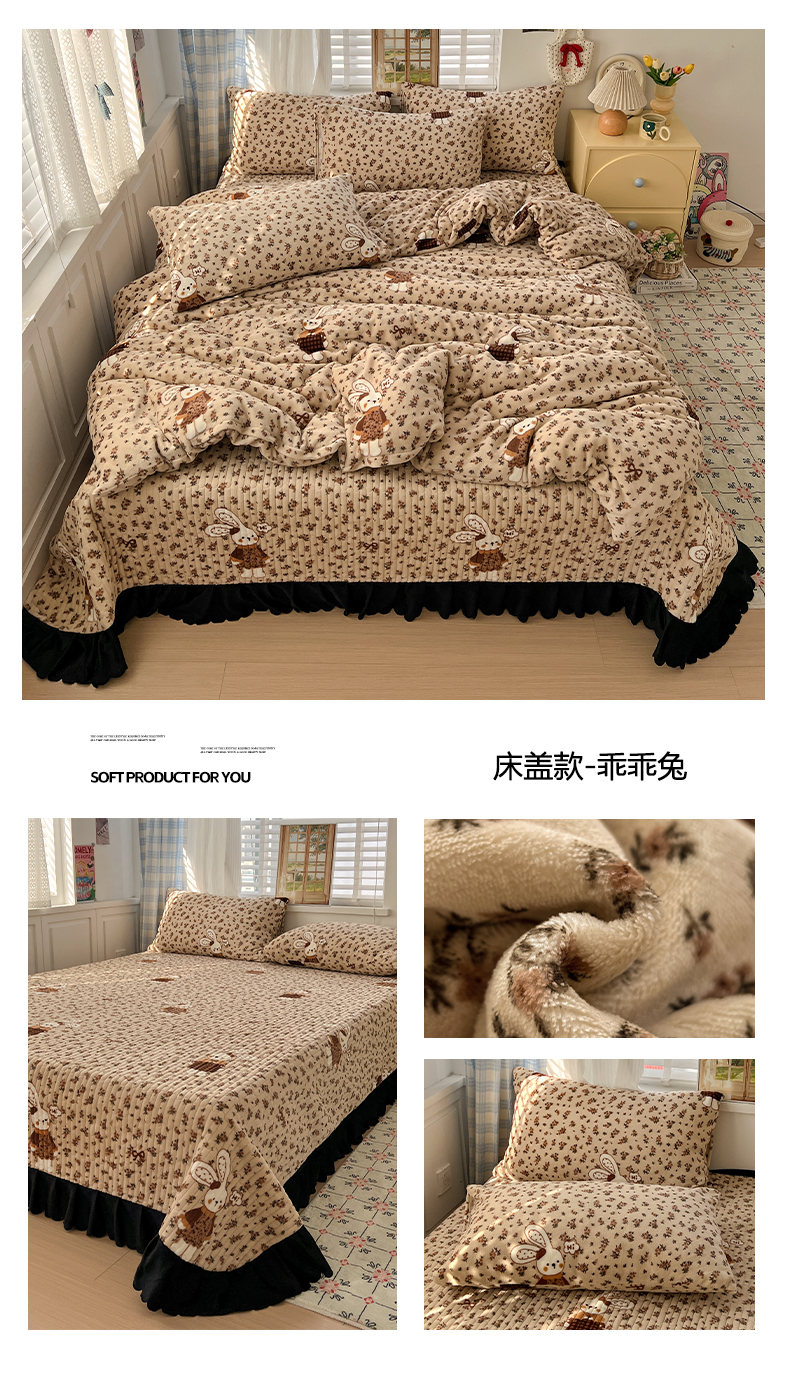 当前位置: 91家纺网 > 商品网购 > 床品套件 > 四件套 > 牛奶绒四件套 > 鑫利来家纺 2025新款牛奶绒加厚印花法式赫本风花边床盖四件套 床盖款-乖乖兔