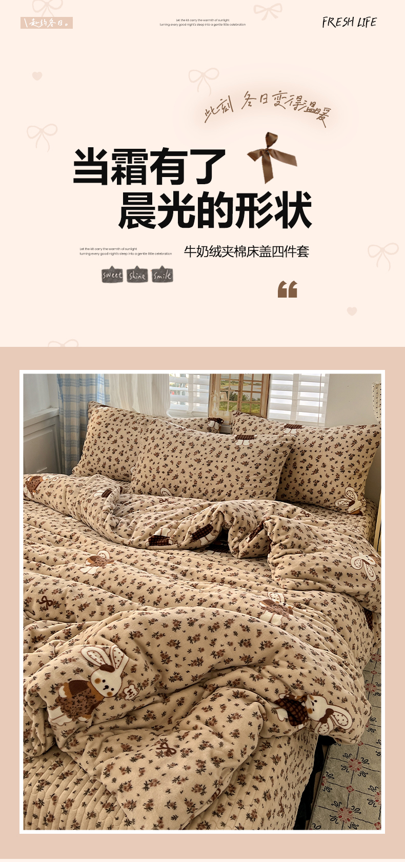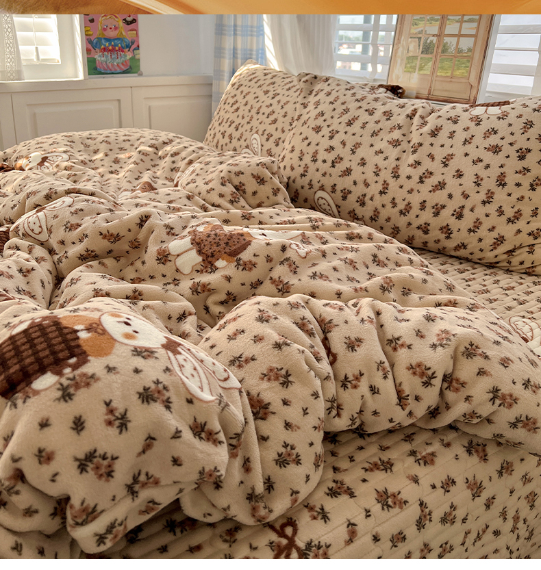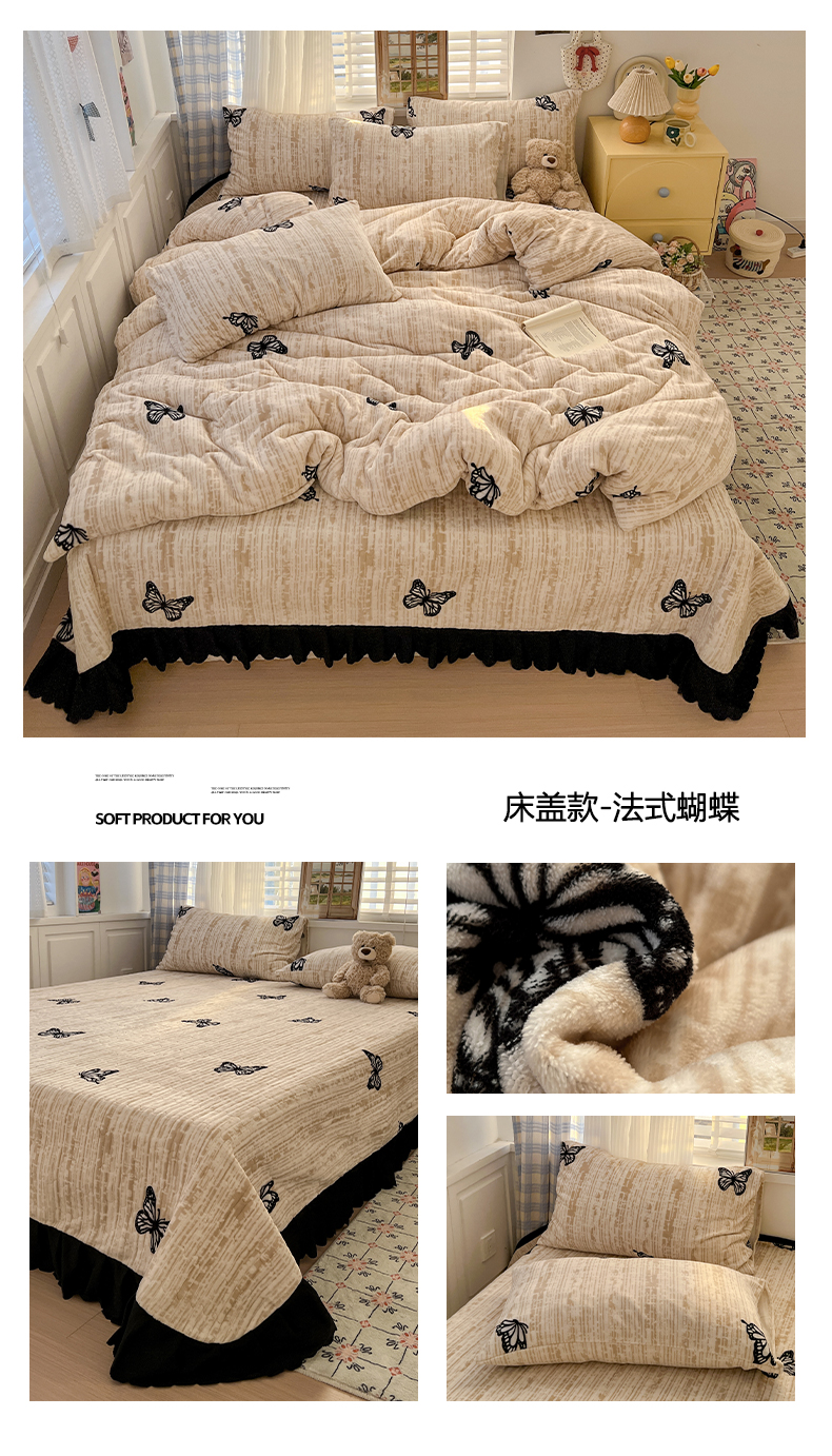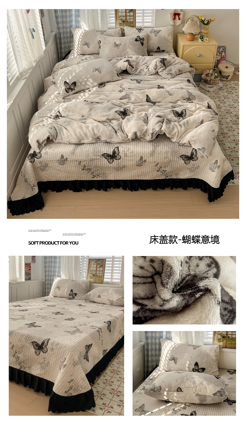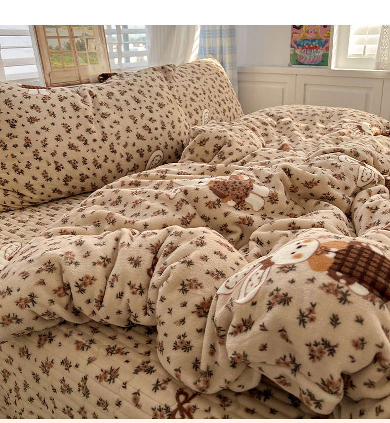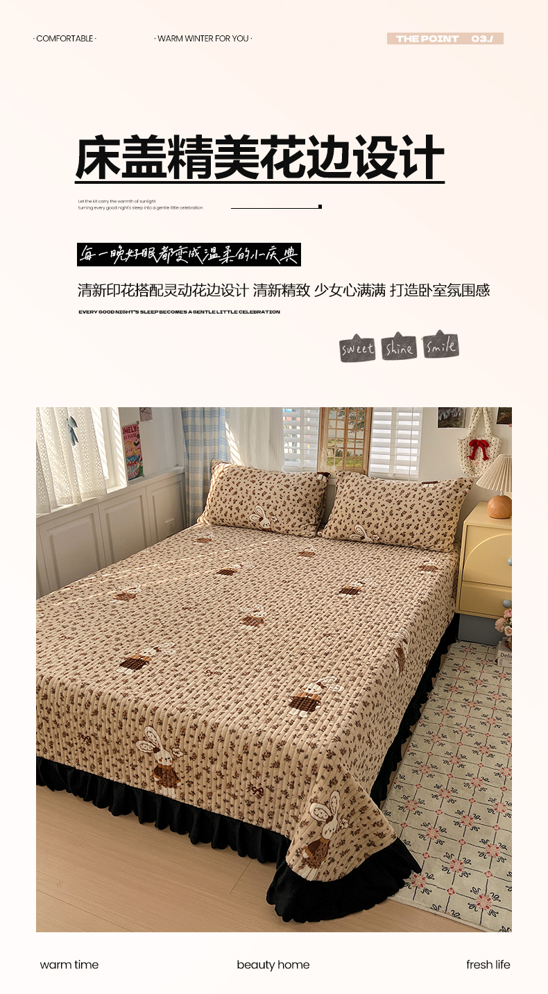 当前位置: 91家纺网 > 商品网购 > 床品套件 > 四件套 > 牛奶绒四件套 > 鑫利来家纺 2025新款牛奶绒加厚印花法式赫本风花边床盖四件套 床盖款-乖乖兔