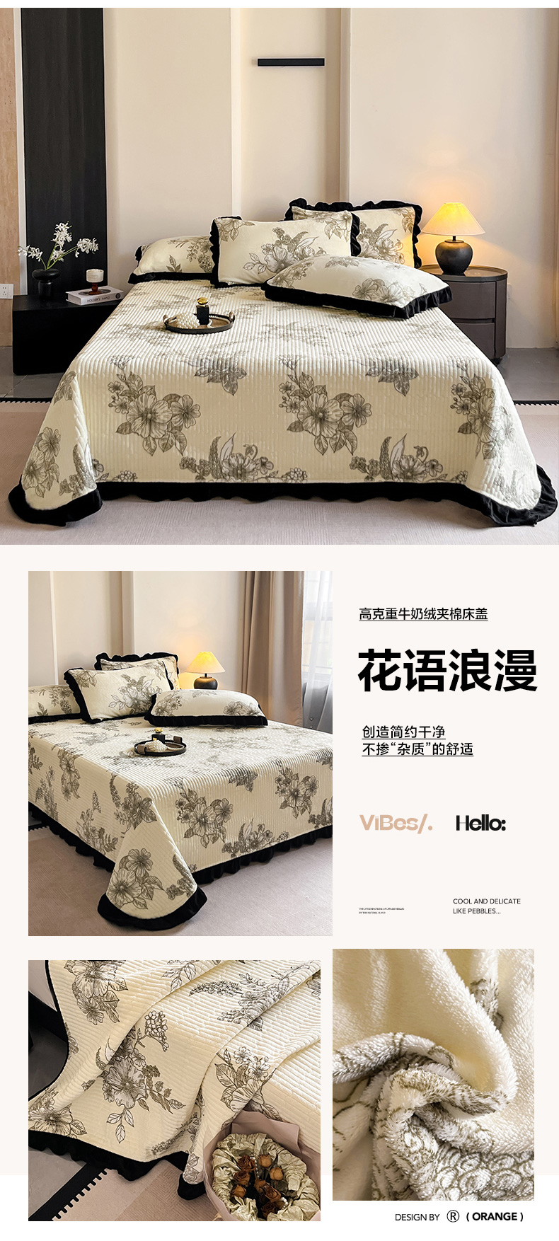 • 91家纺网 家纺一手货源 找家纺 安哆啦家纺 2025新款法式赫本风牛奶绒单床盖 花影浅吟