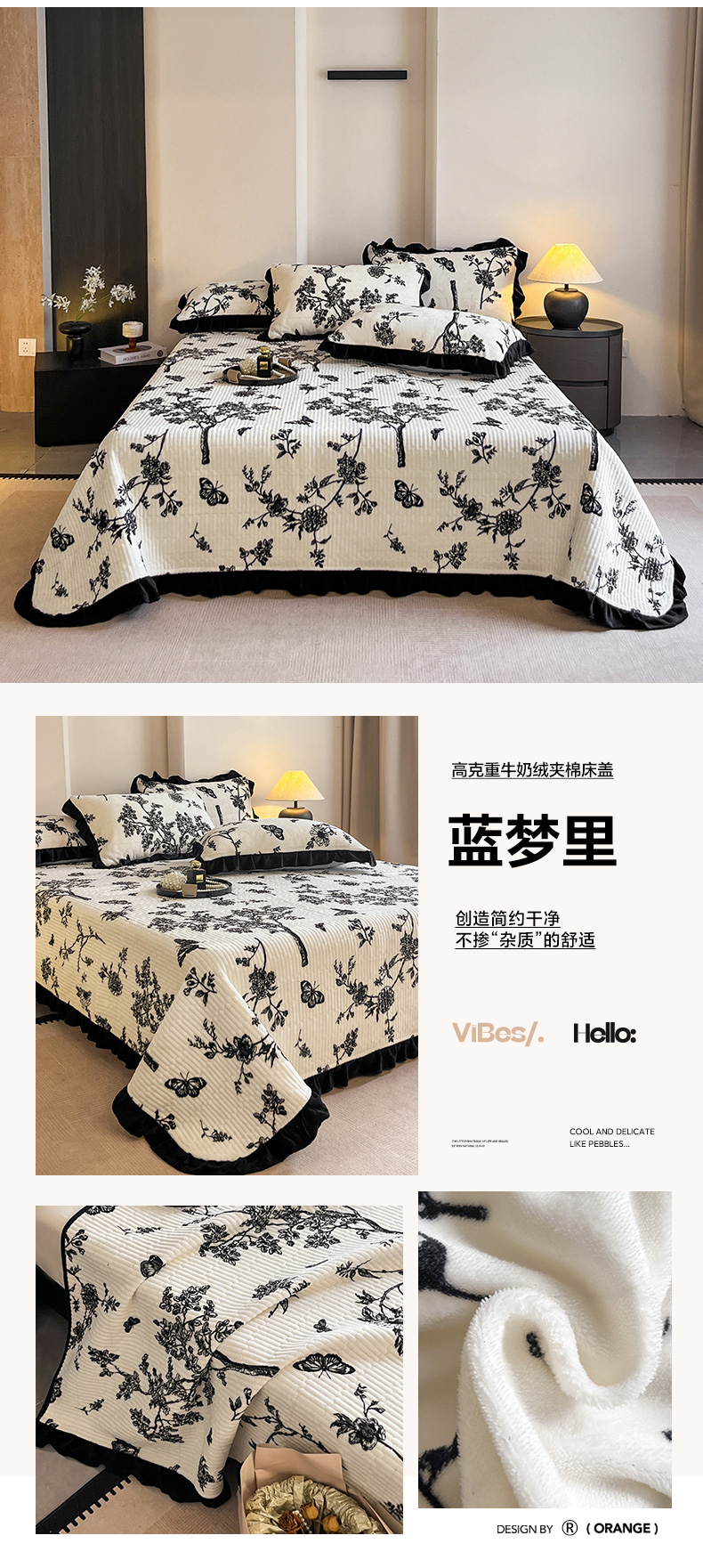 (总)安哆啦家纺 2025新款法式赫本风牛奶绒单床盖,暗夜玫瑰,高级豹纹,蝴蝶翩翩,花影浅吟,花语浪漫,兰絮语,蓝梦里,玫瑰的诗,星河入梦,叶璃,夜幕里