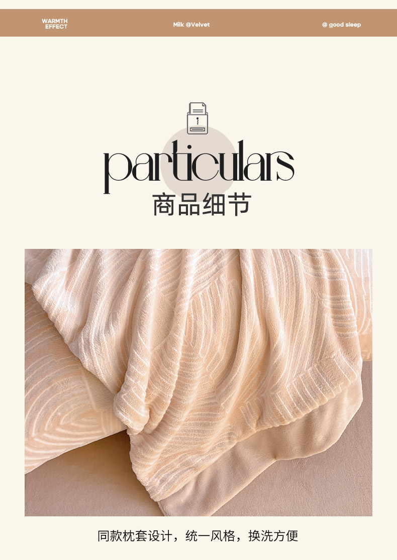 当前位置: 91家纺网 > 商品网购 > 床品套件 > 四件套 > 牛奶绒四件套 > (总) 2025冬季热款A类加厚雕花牛奶绒四件套双面保暖刺绣被套珊瑚绒床单床上用品