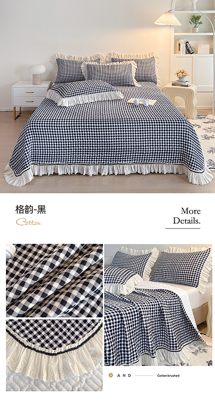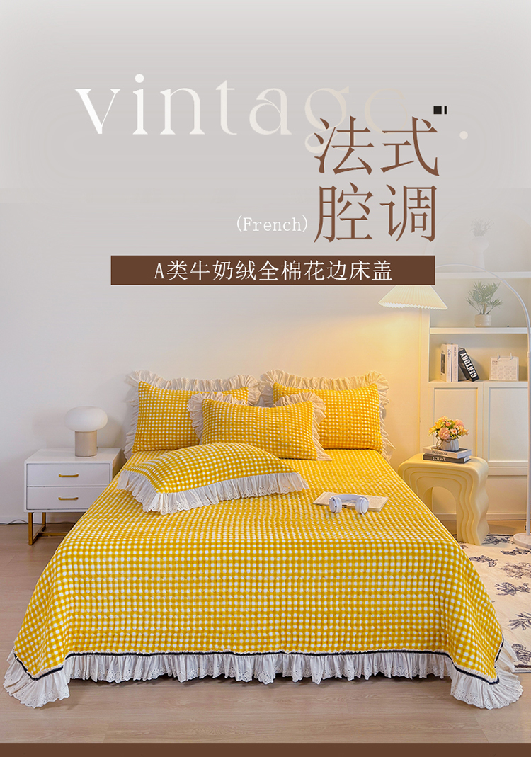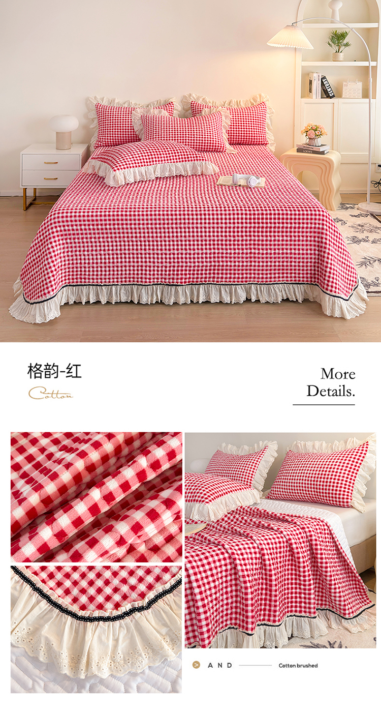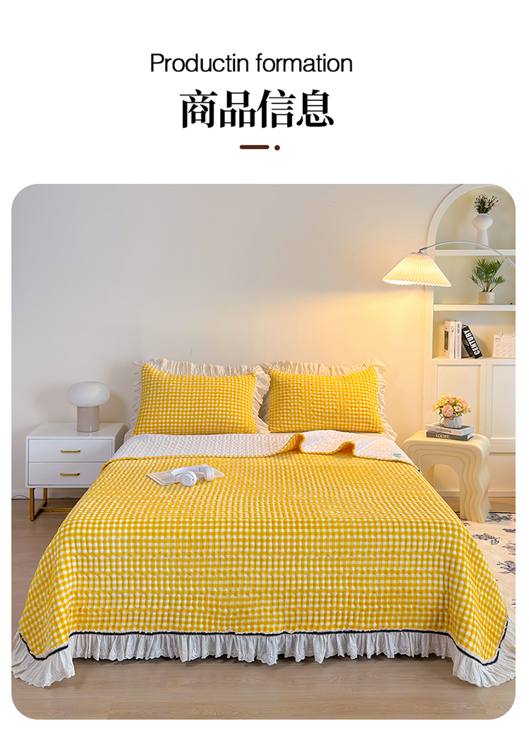 商品名称:2025高克重加厚牛奶绒无印风格子床盖蕾丝花边织带花边宝宝绒婴儿绒简约风单床盖床褥全棉花边床单三件套