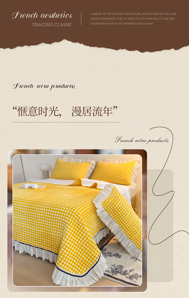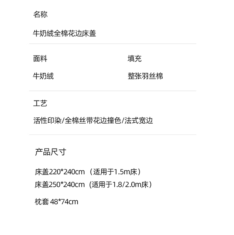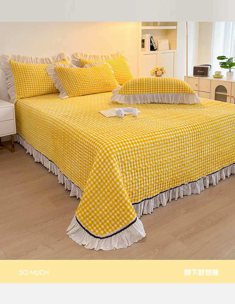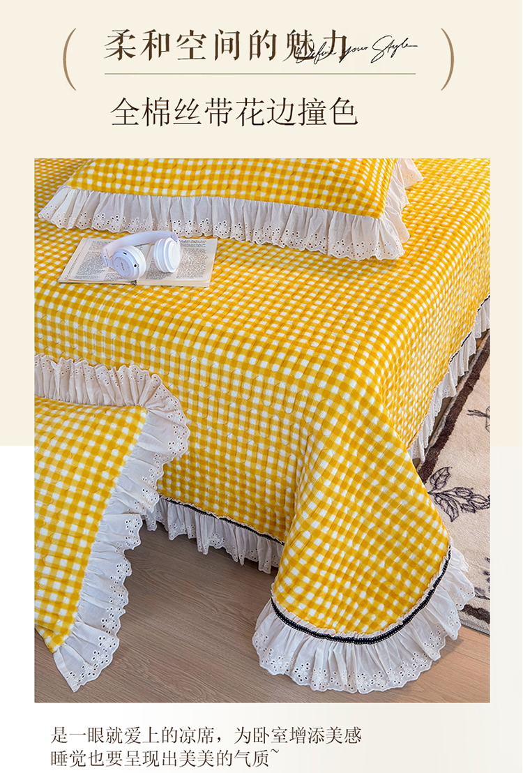 商品名称:2025高克重加厚牛奶绒无印风格子床盖蕾丝花边织带花边宝宝绒婴儿绒简约风单床盖床褥全棉花边床单三件套