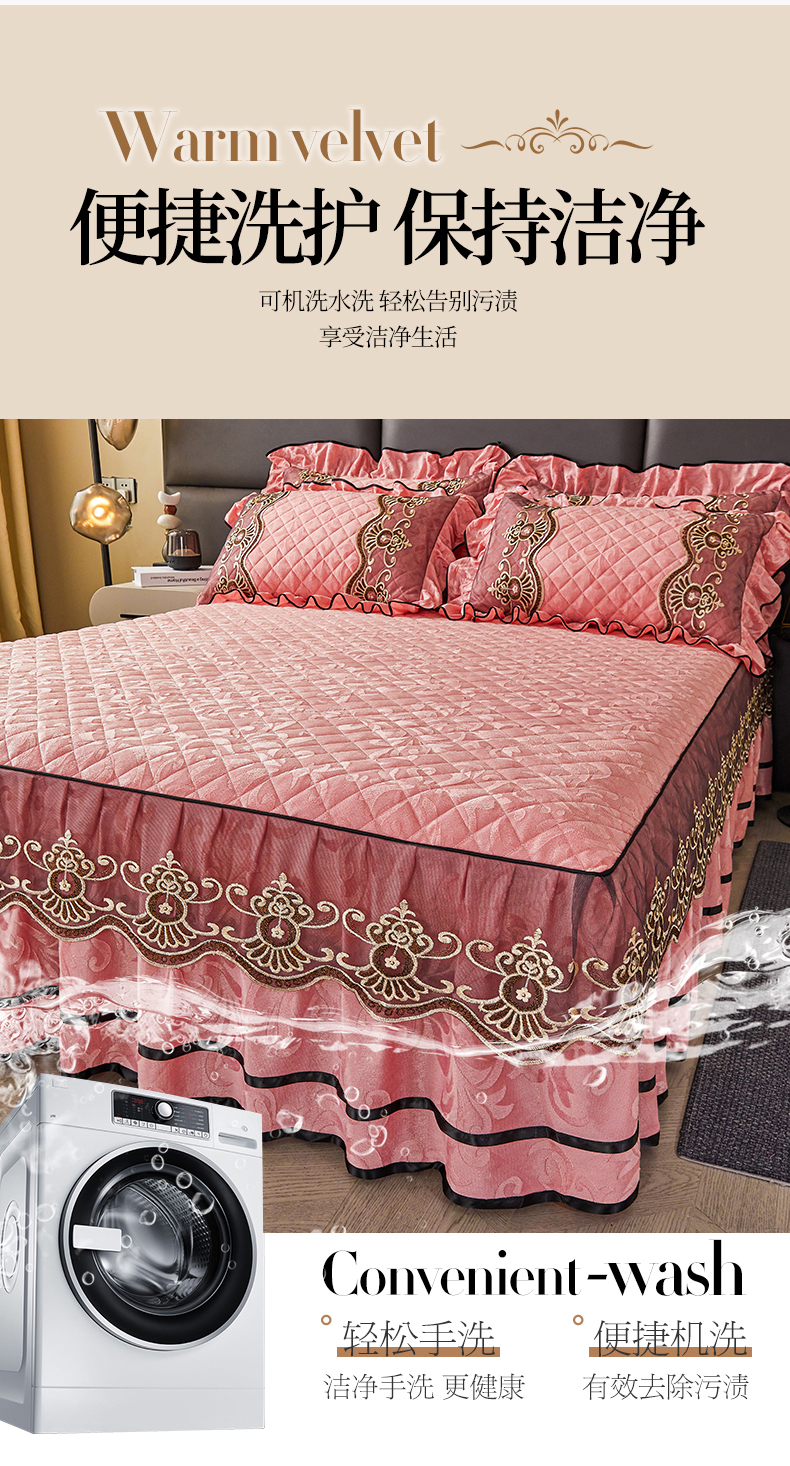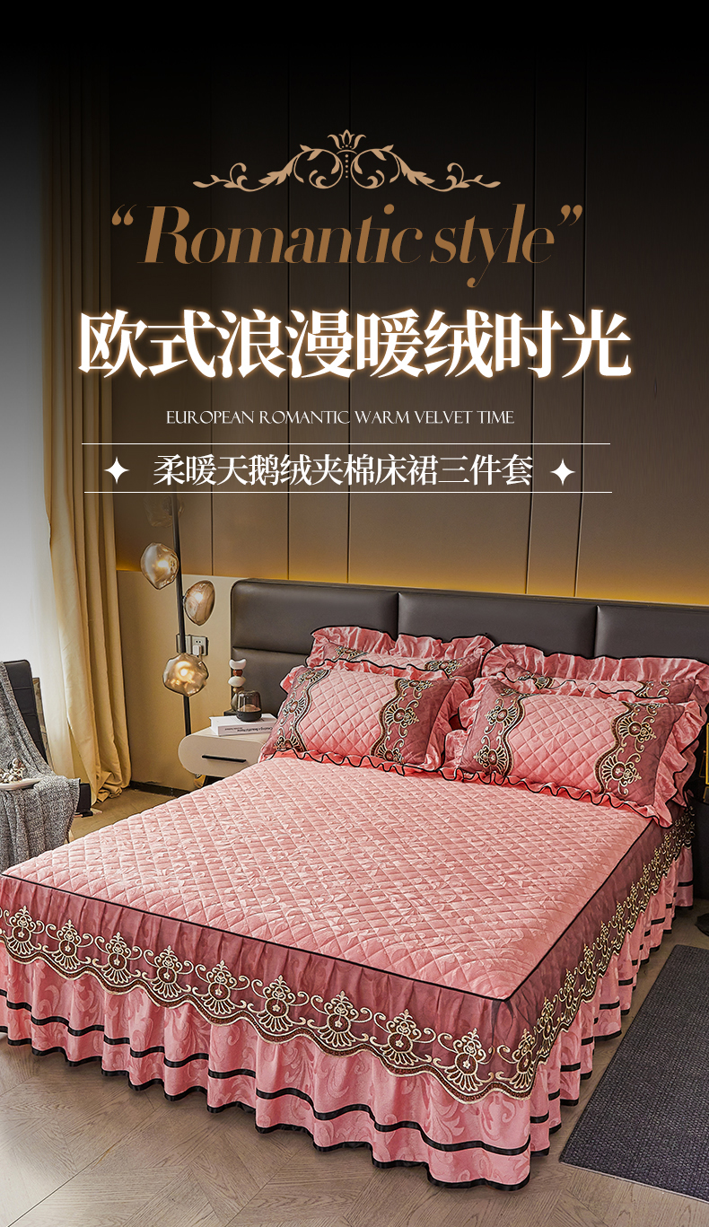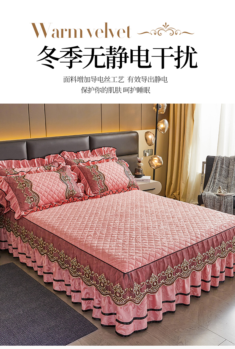 • 91家纺网 家纺一手货源 找家纺 好儿喜家纺 2025新款柔暖天鹅绒夹棉床裙奥菲庄园系列床裙三件套 奥菲庄园-驼
