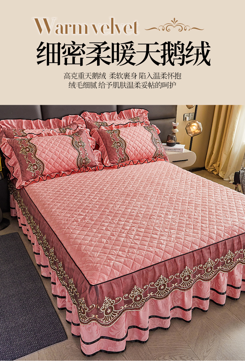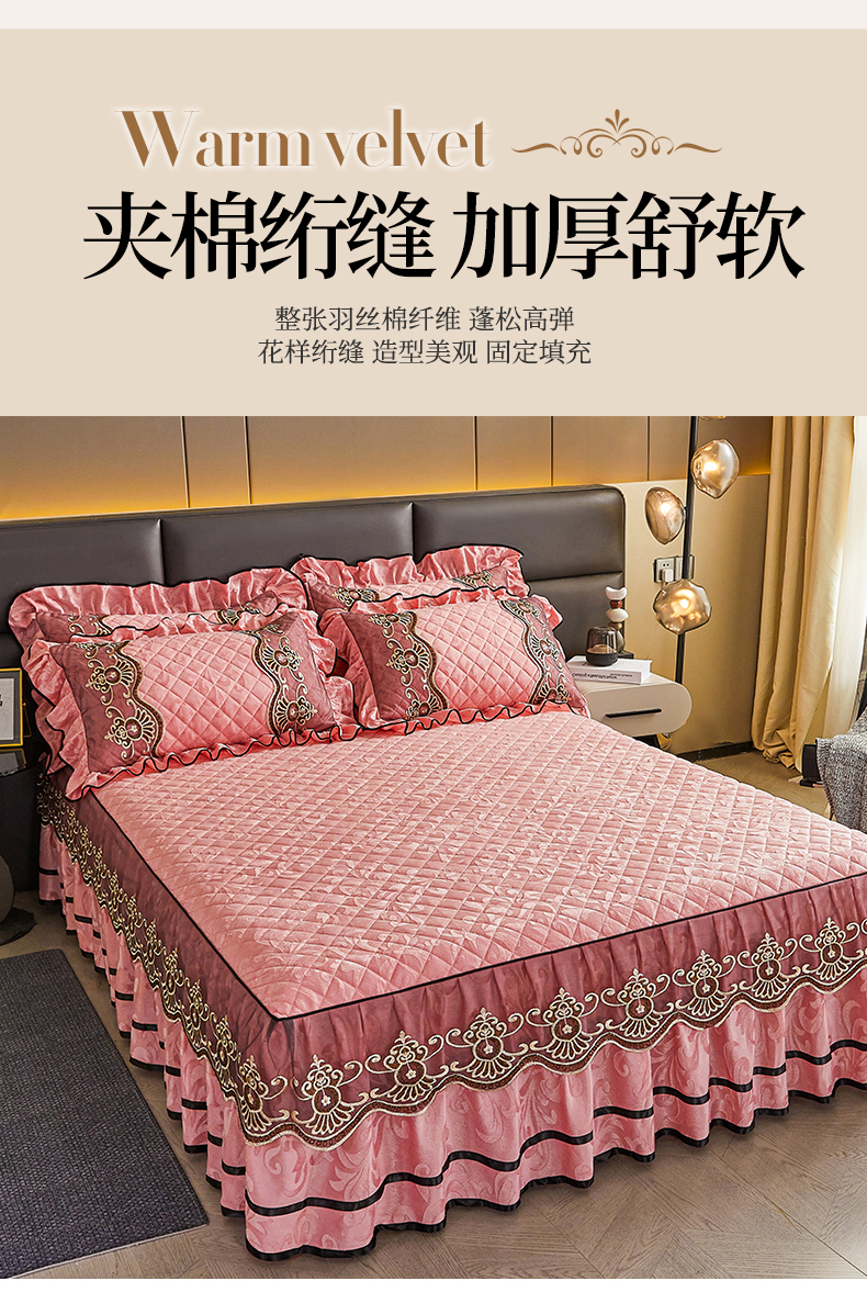 好儿喜家纺 2025新款柔暖天鹅绒夹棉床裙奥菲庄园系列床裙三件套 奥菲庄园-驼