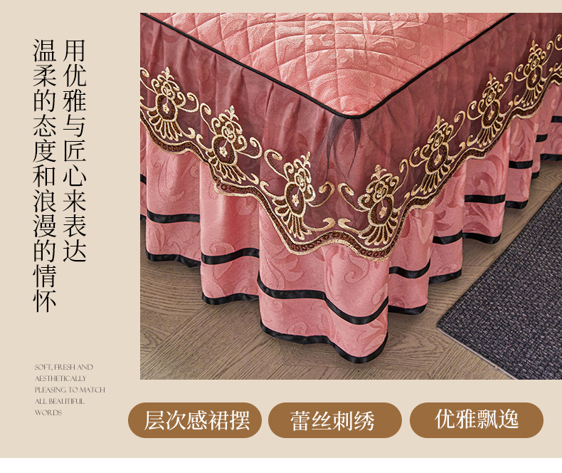 当前位置: 91家纺网 > 商品网购 > 床上用品 > 床裙 > 好儿喜家纺 2025新款柔暖天鹅绒夹棉床裙奥菲庄园系列床裙三件套 奥菲庄园-驼