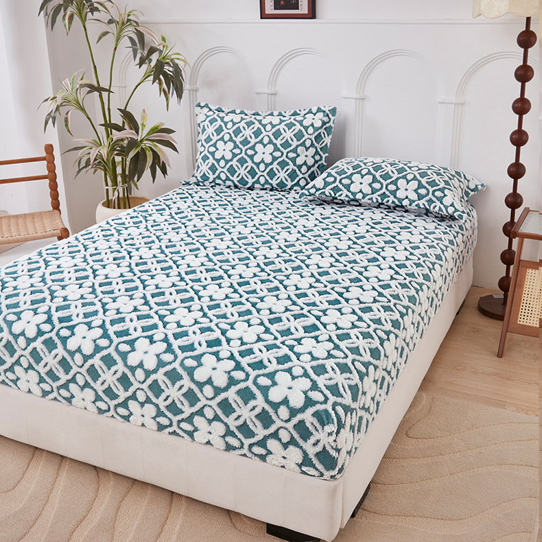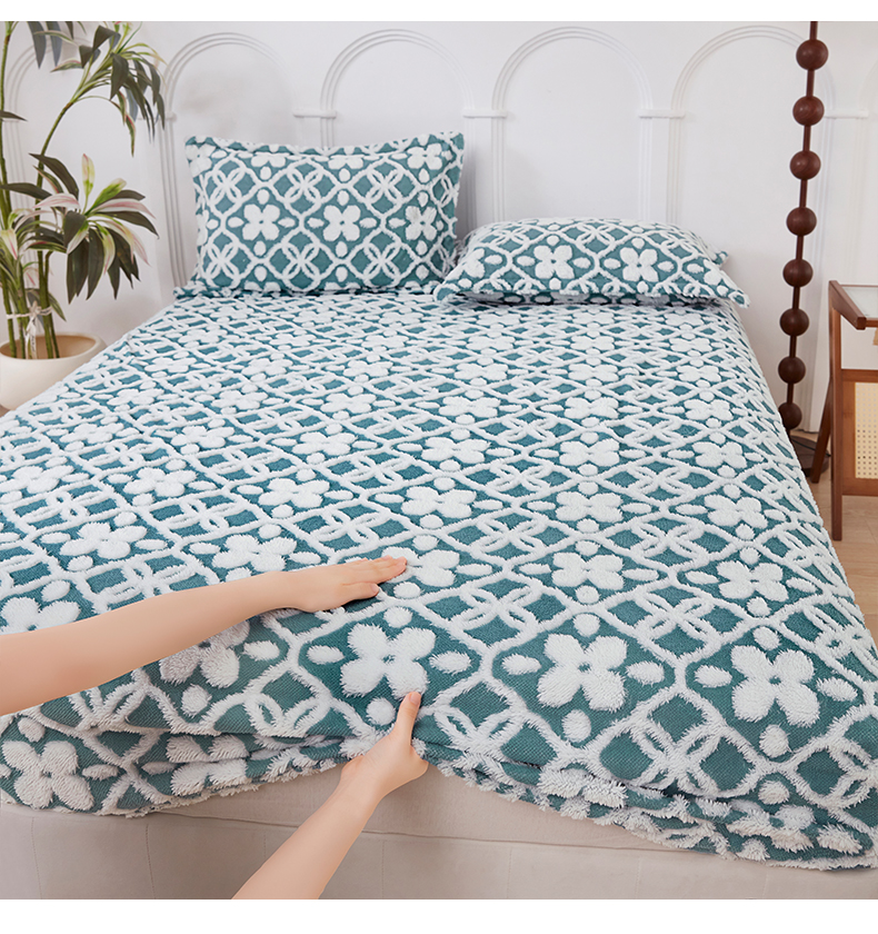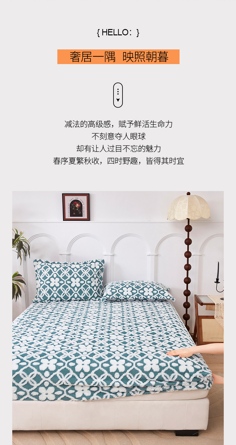 云玲时尚 2025新款阳离子塔芙绒床笠 山茶蓝