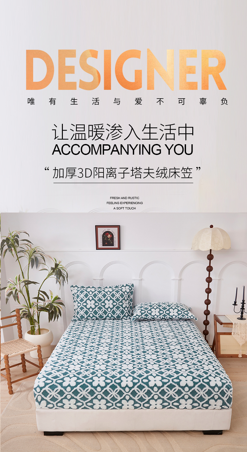 商品名称:云玲时尚 2025新款阳离子塔芙绒床笠 山茶蓝