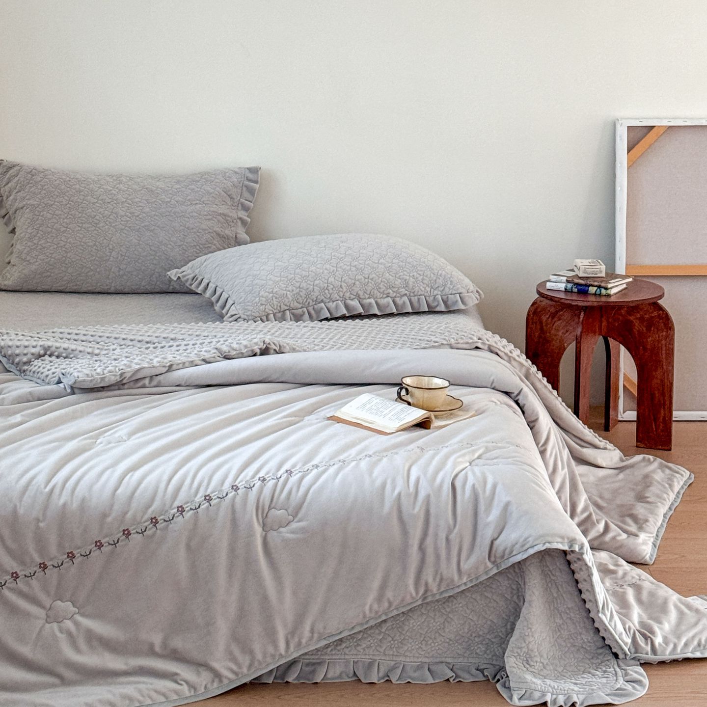 (总)汇庭 2025秋冬新·花边款单双人豆豆被系列,炊烟,萌芽,组合图仅供参考,桃花溪,山海绿,山海蓝,莫尼卡,可可草莓,静香,海花岛