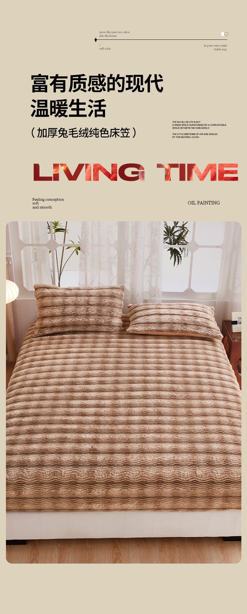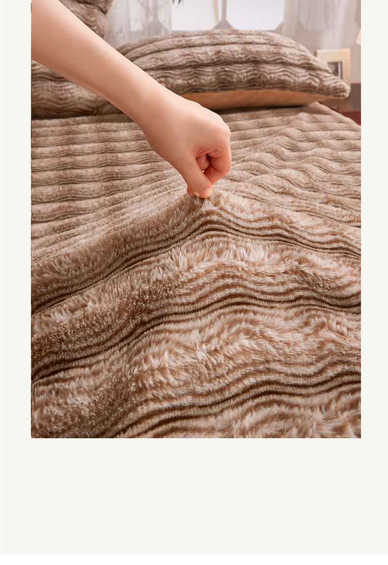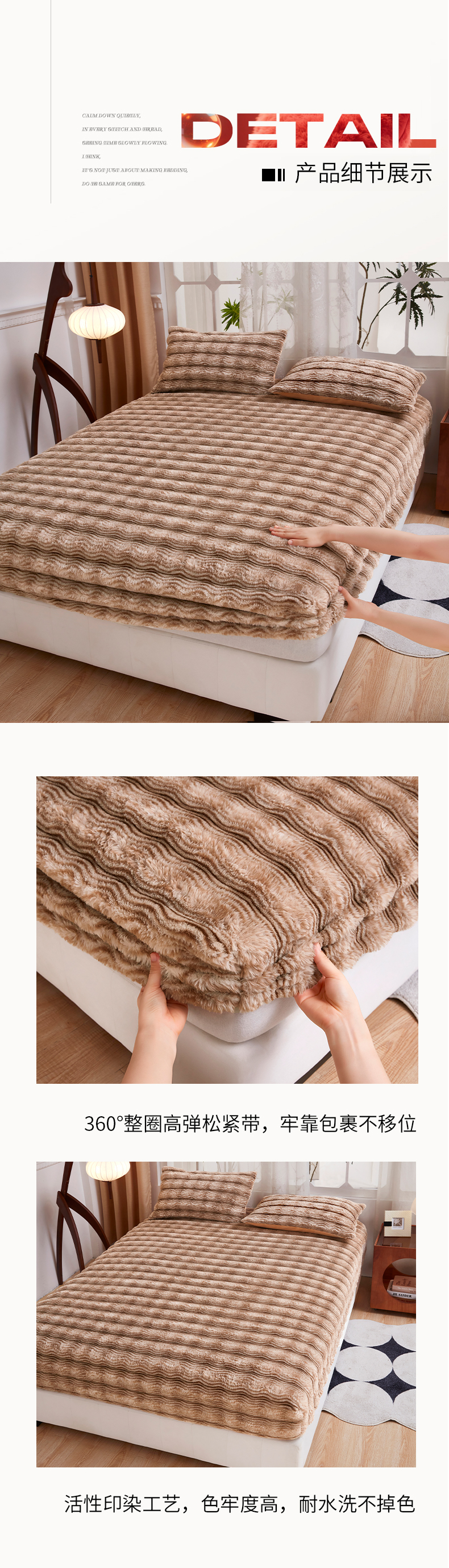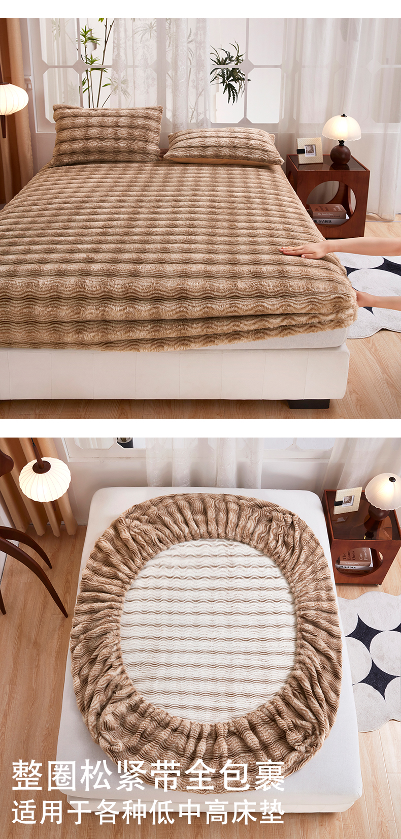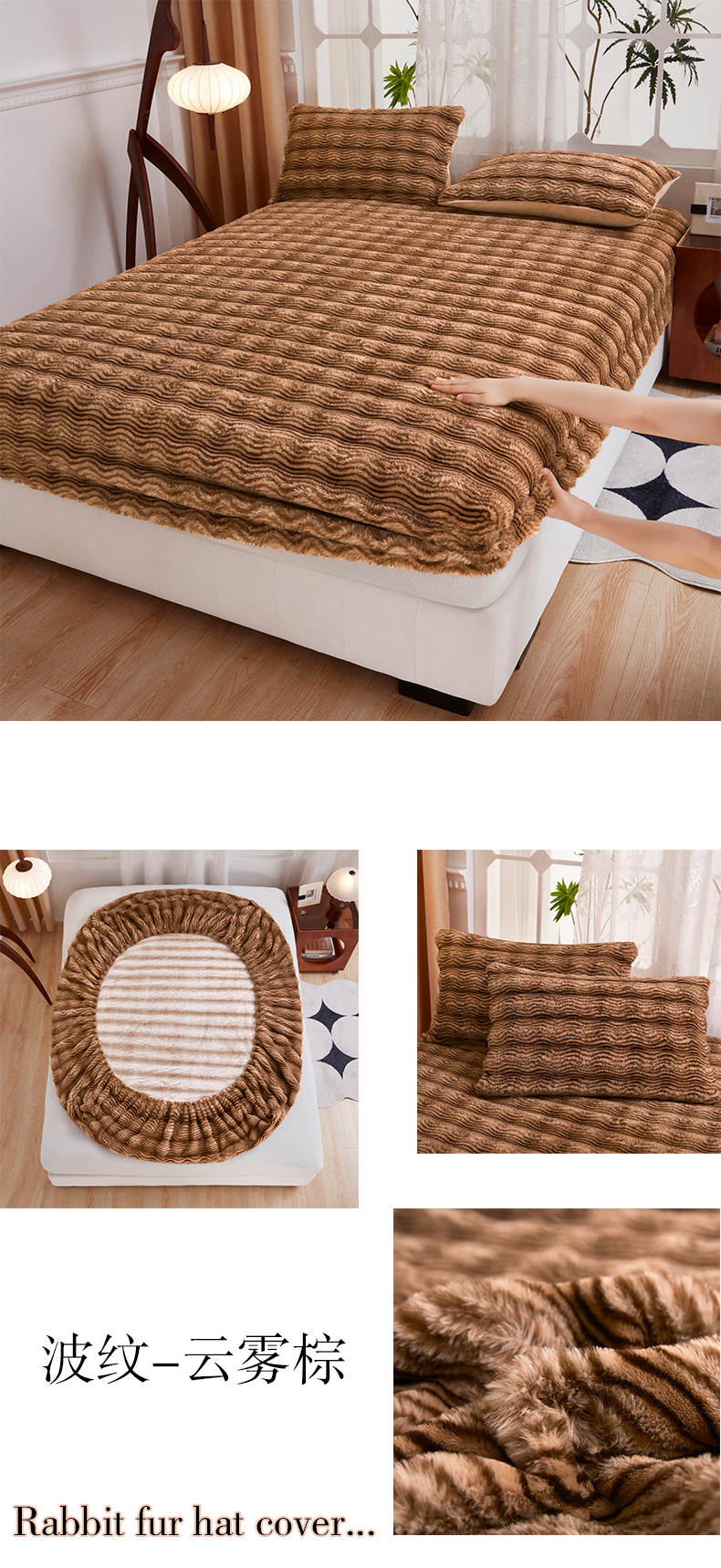 商品名称:乐居家纺 2025新款加厚兔毛绒纯色床笠系列 波纹-云雾棕