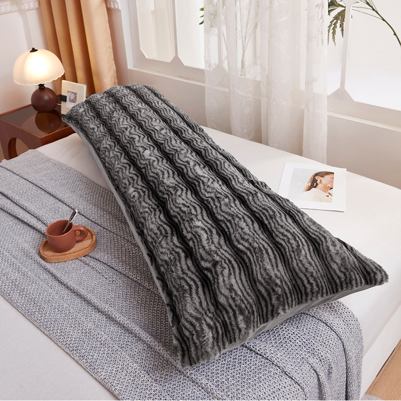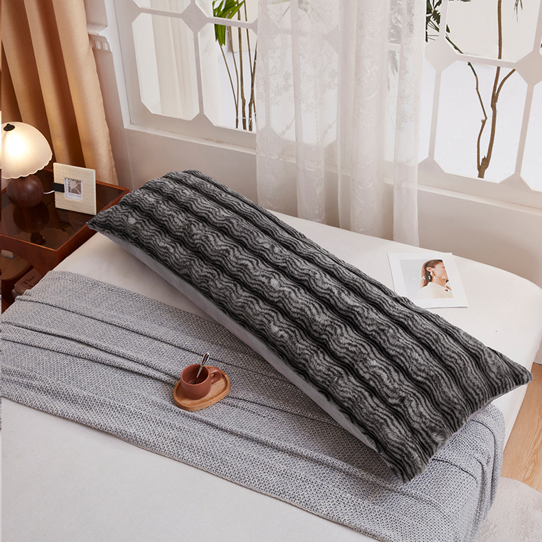 乐居家纺 2025新款加厚兔毛绒纯色双人枕系列 波纹-云雾深灰