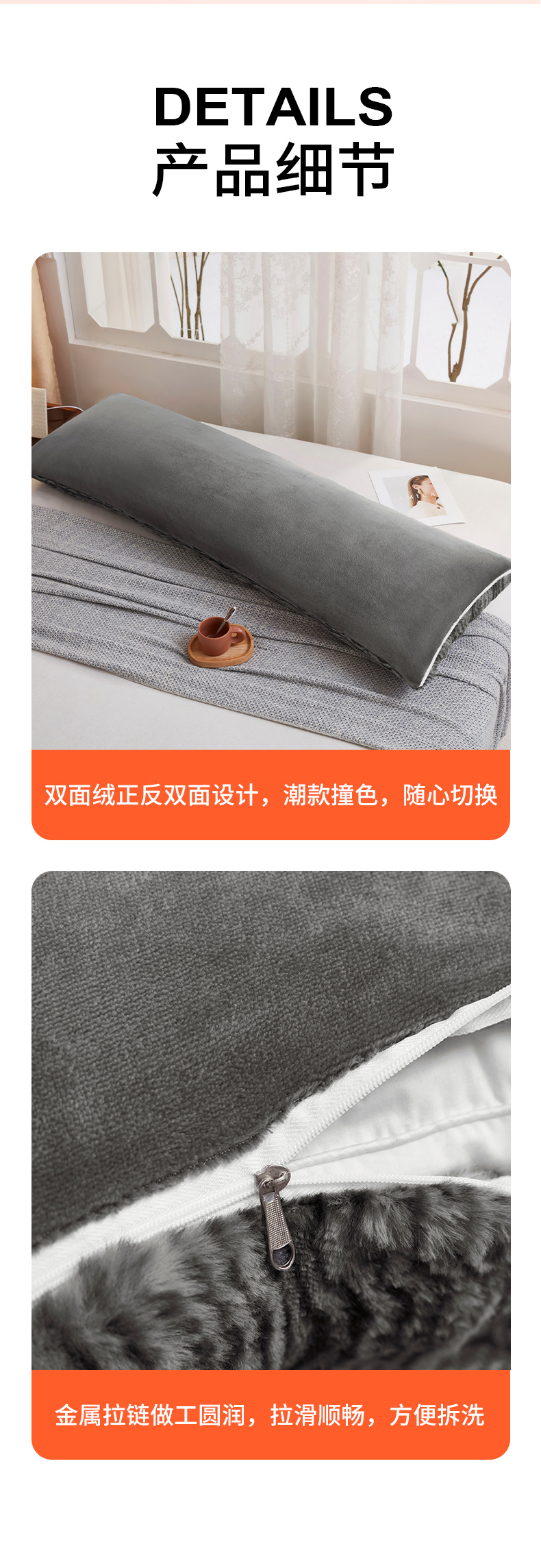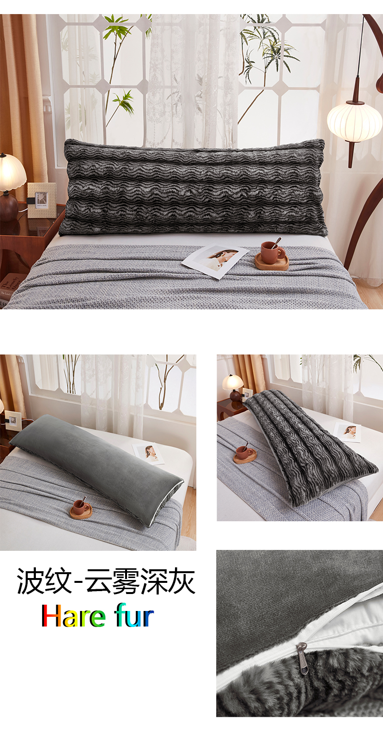 商品名称:乐居家纺 2025新款加厚兔毛绒纯色双人枕系列 波纹-云雾深灰