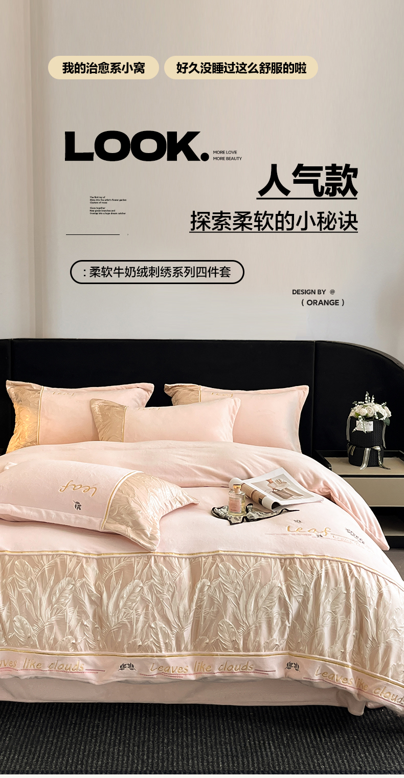 当前位置: 91家纺网 > 商品网购 > 床品套件 > 四件套 > 牛奶绒四件套 > 帝王家纺 2025冬季新款高克重浮雕刺绣牛奶绒四件套加厚保暖双面珊瑚绒-漫叶 漫叶-淡雅玉