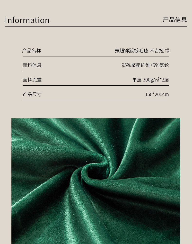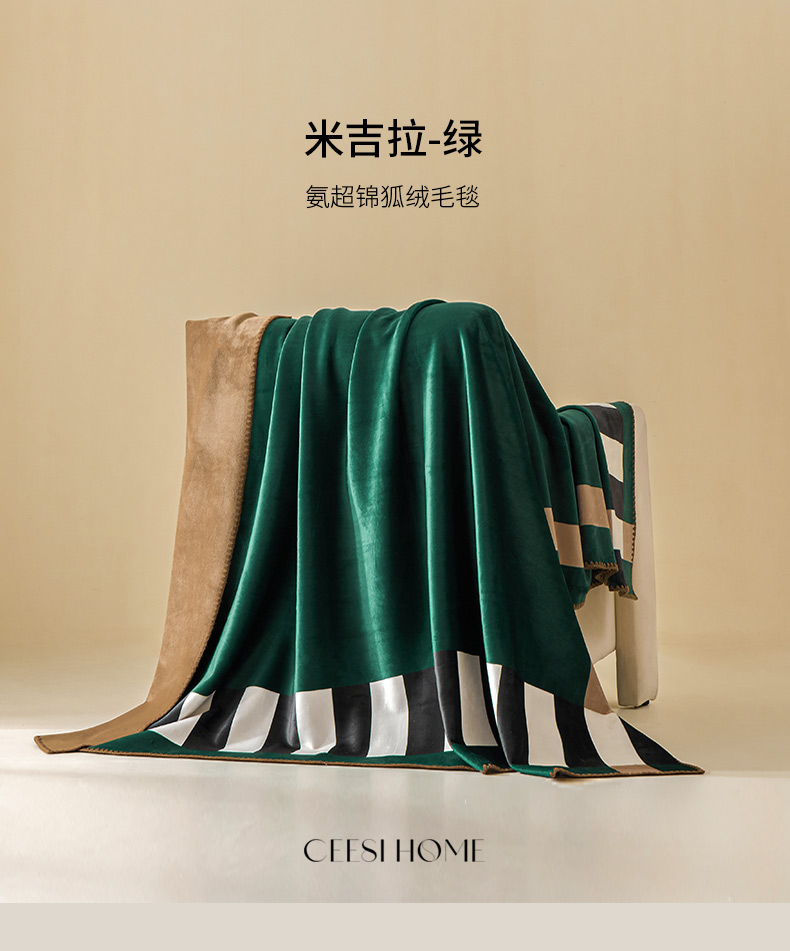商品名称:(总)禧禾 2025新款300g氨超锦狐绒数码印花毛毯-米吉拉 绿