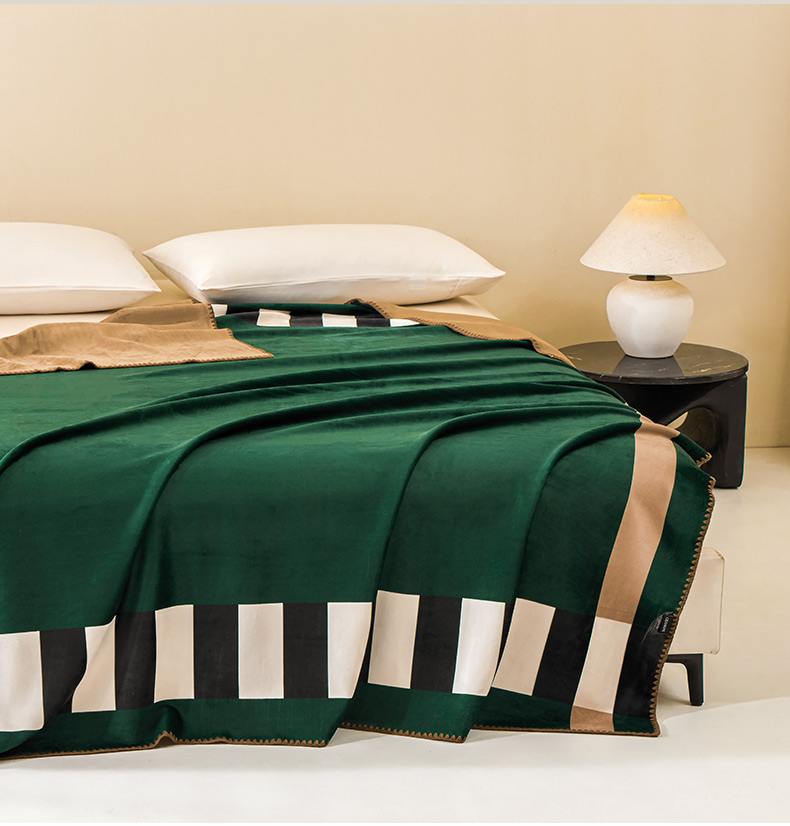 (总)禧禾 2025新款300g氨超锦狐绒数码印花毛毯-米吉拉 绿