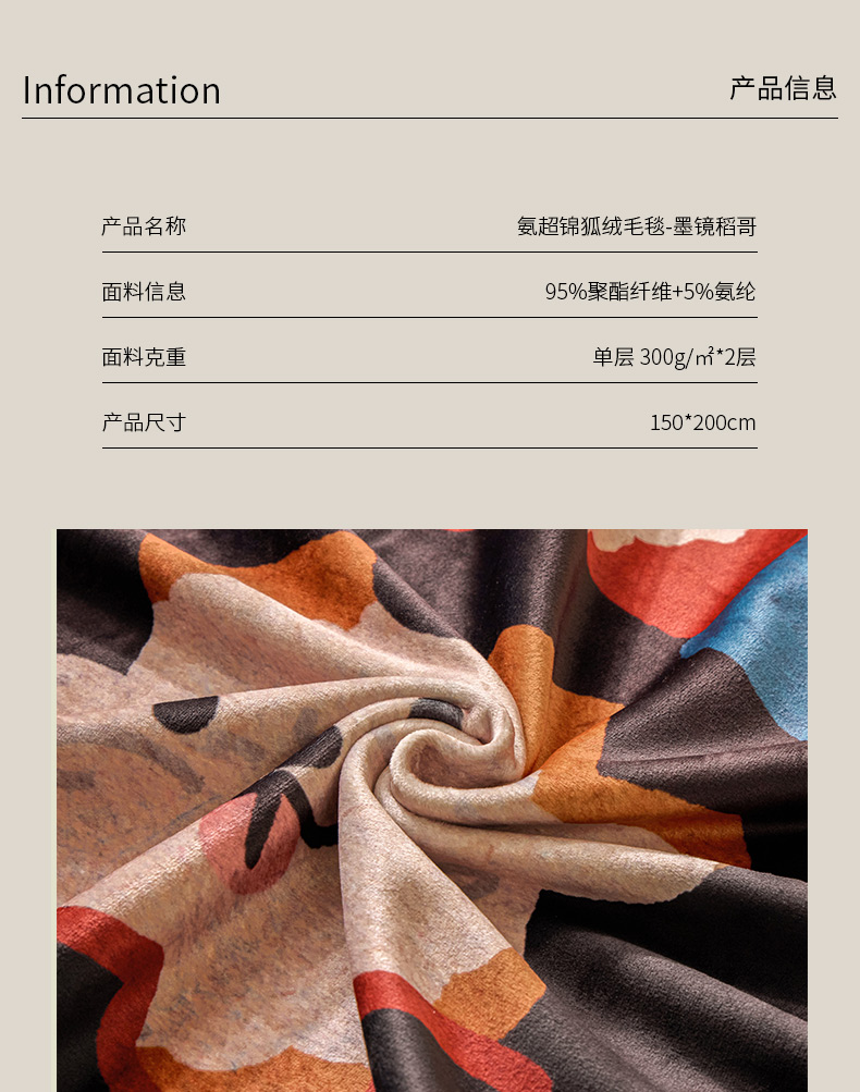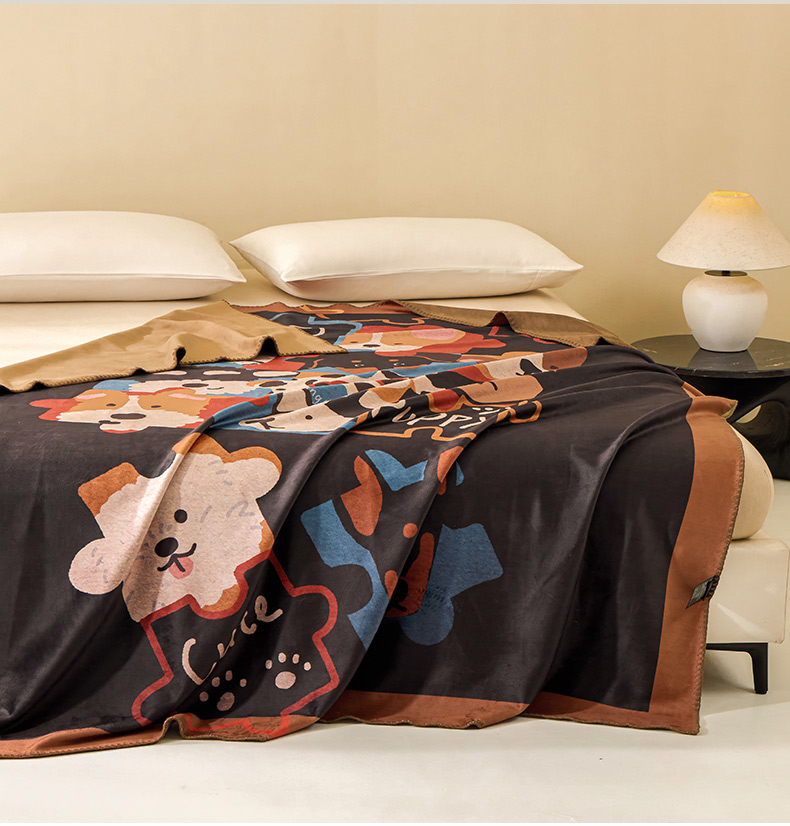(总)禧禾 2025新款300g氨超锦狐绒数码印花毛毯-米吉拉 咖,米吉拉-咖