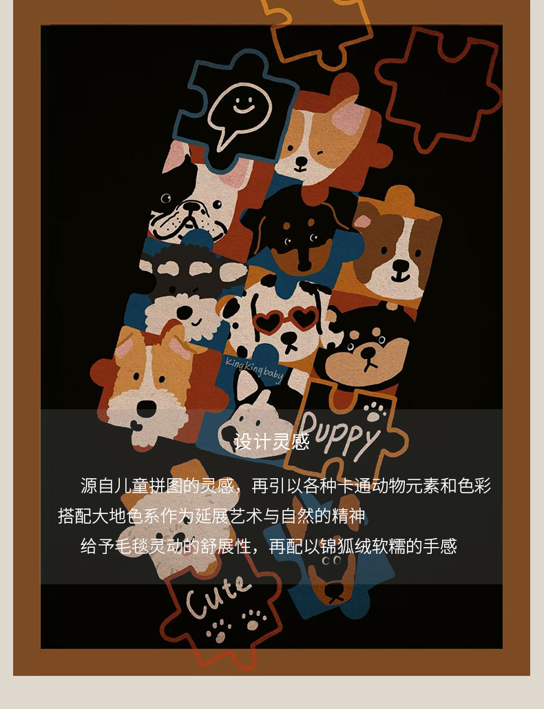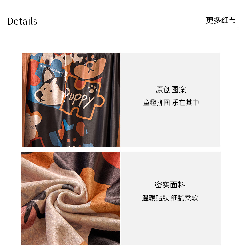 (总)禧禾 2025新款300g氨超锦狐绒数码印花毛毯-动物拼图,动物拼图