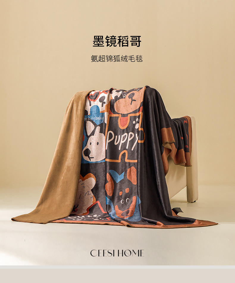 商品名称:(总)禧禾 2025新款300g氨超锦狐绒数码印花毛毯-墨镜稻哥