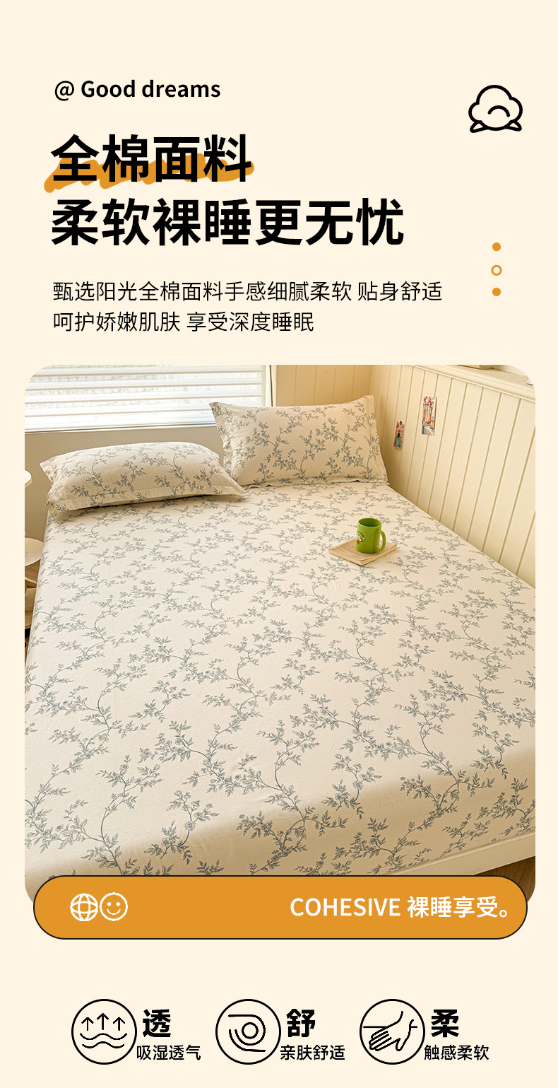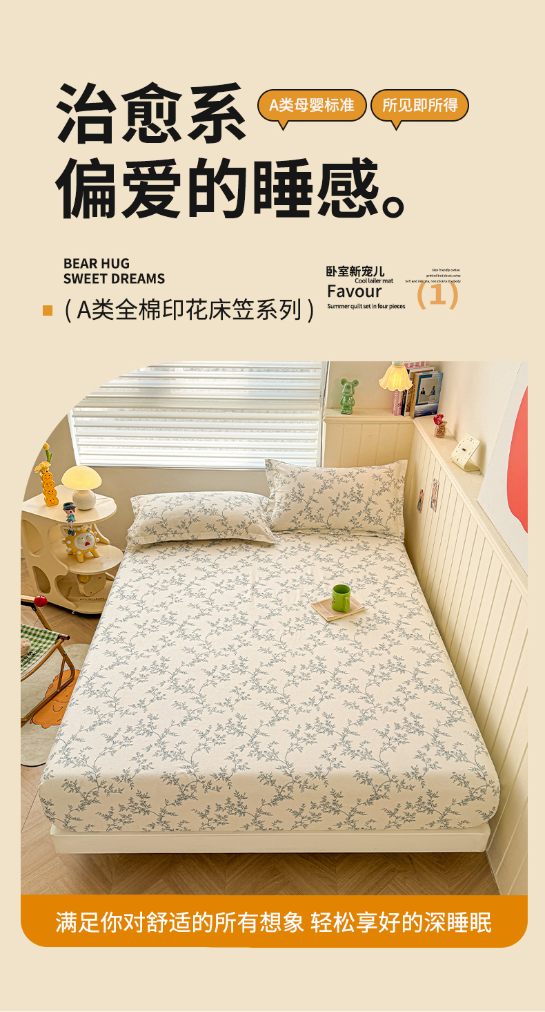 名优家纺 2025新款12868全棉印花外贸床笠 满庭