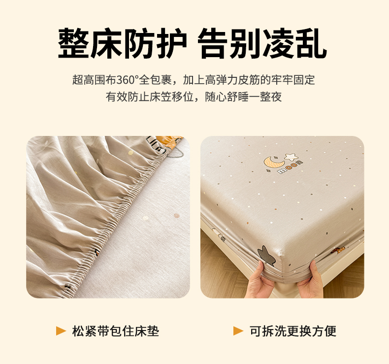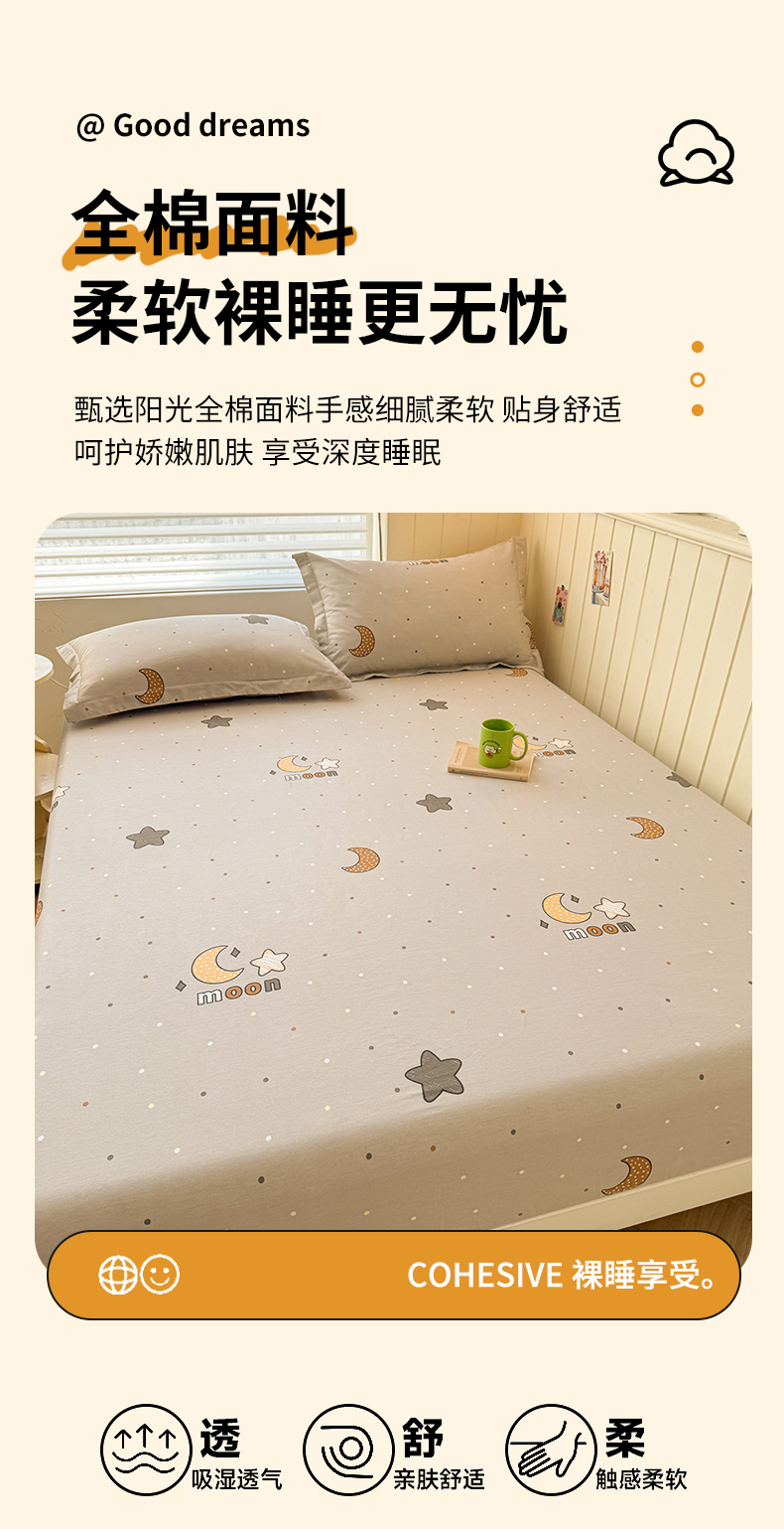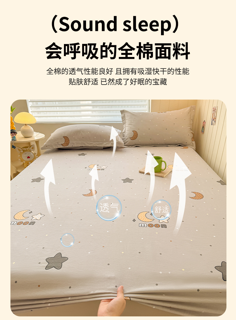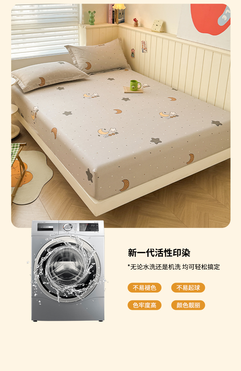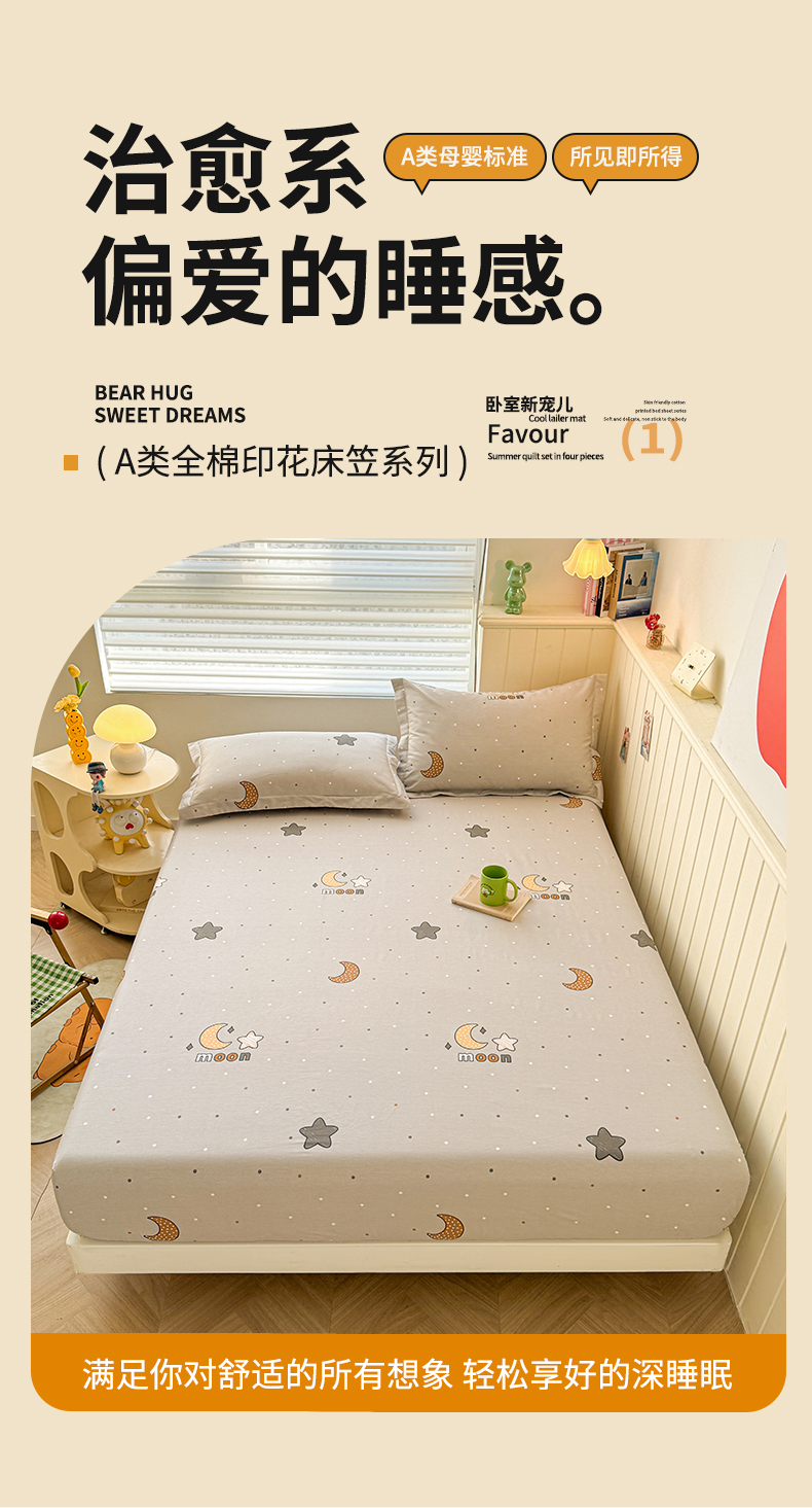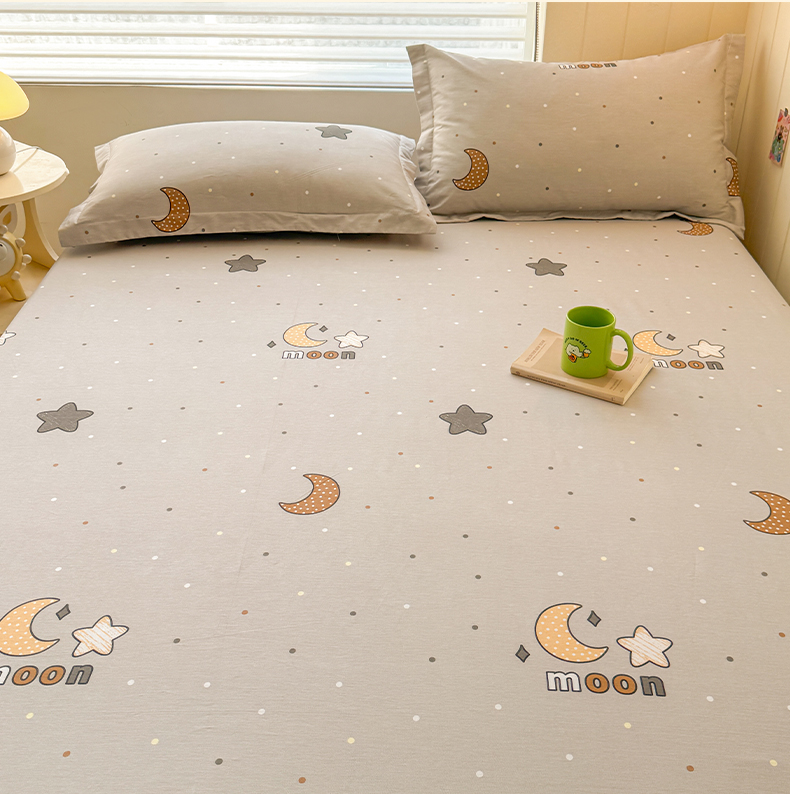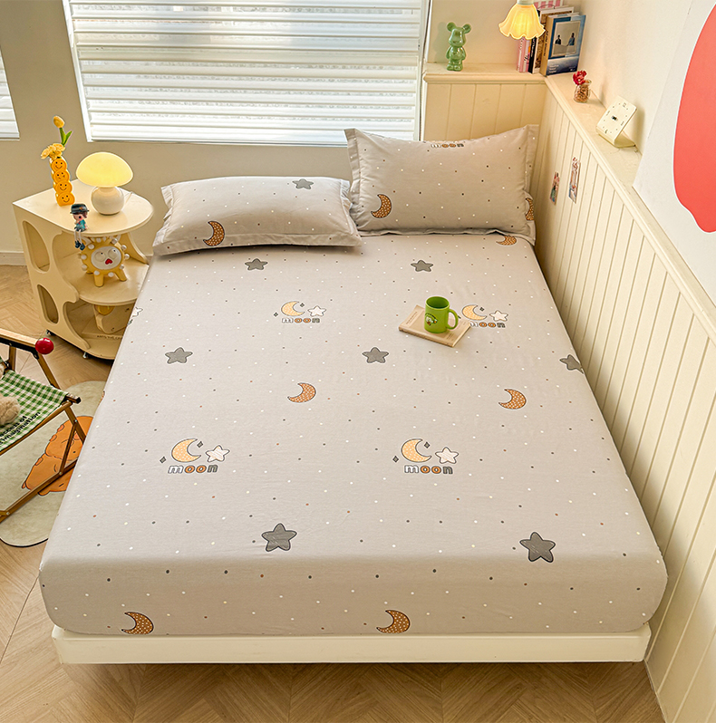 名优家纺 2025新款12868全棉印花外贸床笠 月之星-灰