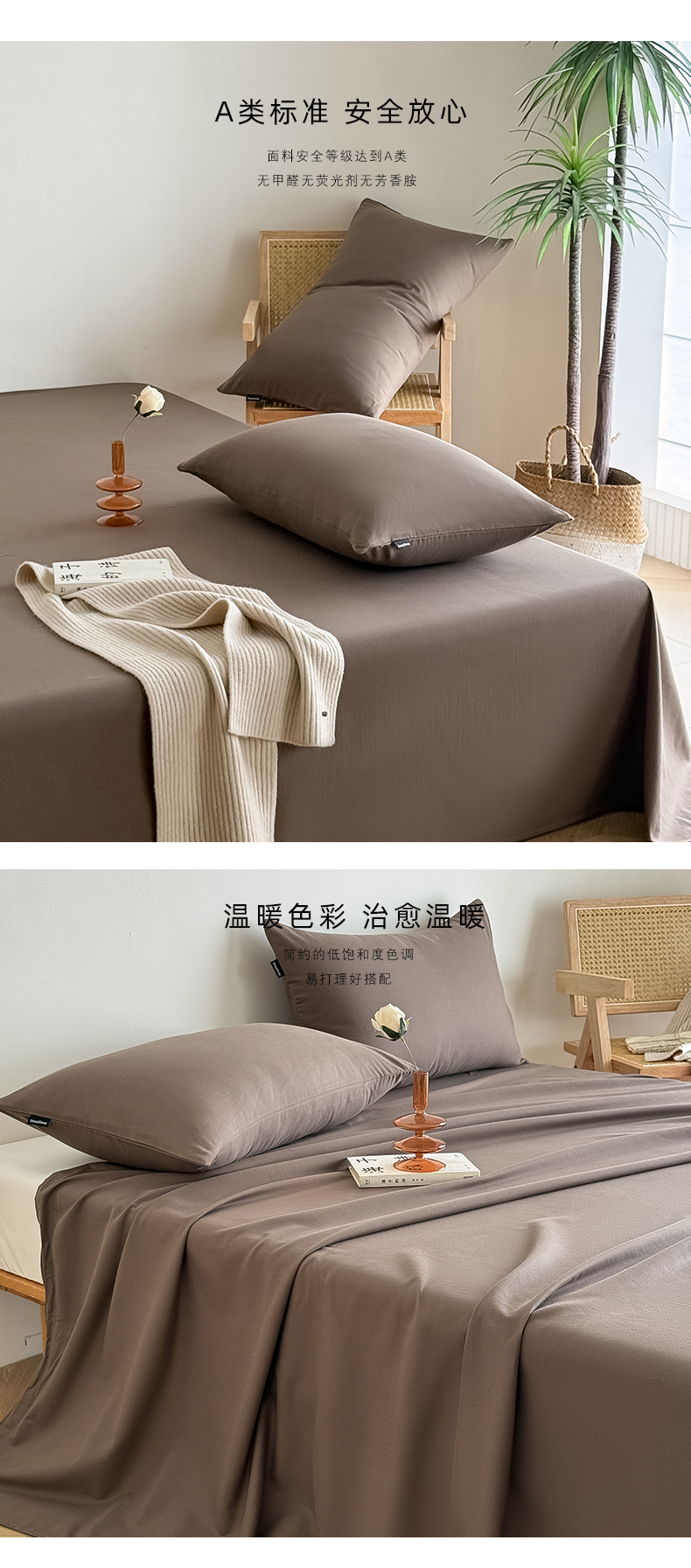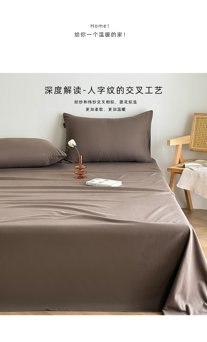 Mr.pig猪先生水洗棉 2025新款全棉人字纹单床单 深棕