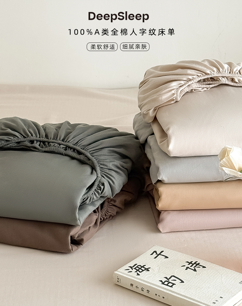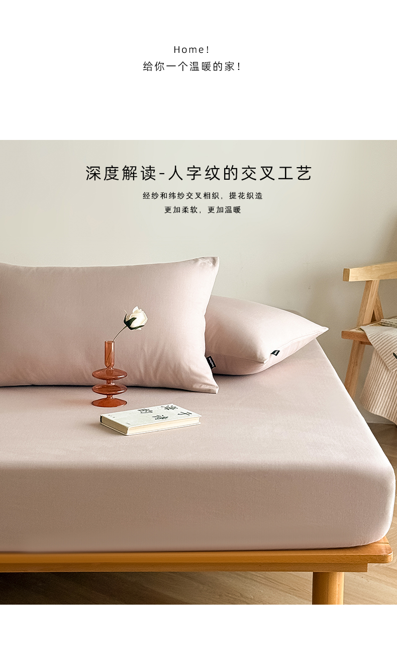 Mr.pig猪先生水洗棉 2025新款全棉人字纹单床笠 组合