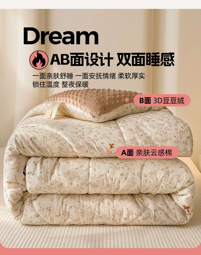 • 91家纺网 家纺一手货源 找家纺 丝芙妮家居(原乐视家纺) 2025新款云感棉豆豆被春秋被冬被被子被芯 漫花