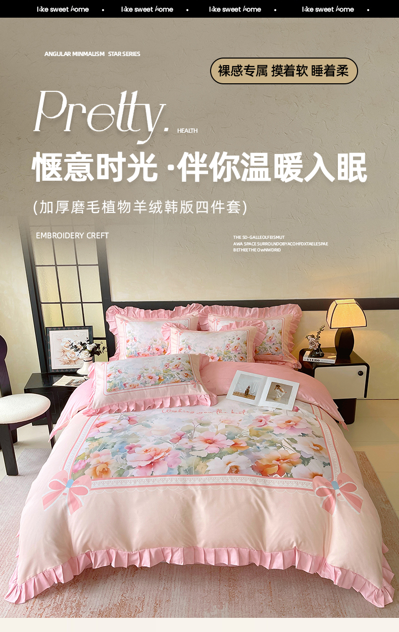 (总)大麦乐田 2025新款加厚磨毛植物羊绒韩版四件套,法式浪漫 绿,法式浪漫 玉,花屹恋人 绿,花屹恋人 玉,甜蜜佳人 兰,甜蜜佳人 玉