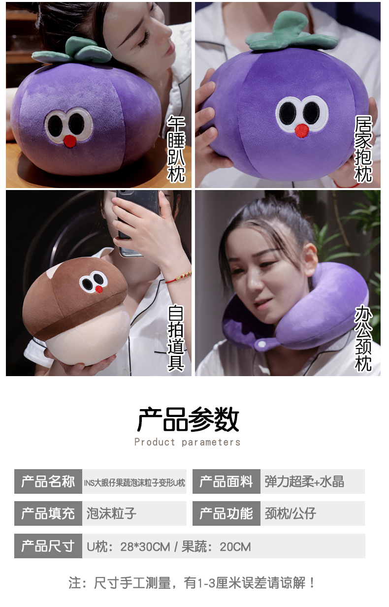 当前位置: 91家纺网 > 商品网购 > 枕头/枕芯/保健枕/颈椎枕 > U型枕 > 仟亿莱 2025新款大眼仔果蔬系列泡沫粒子变形u枕 变形茄子-3 u枕28*30cm/果蔬20cm