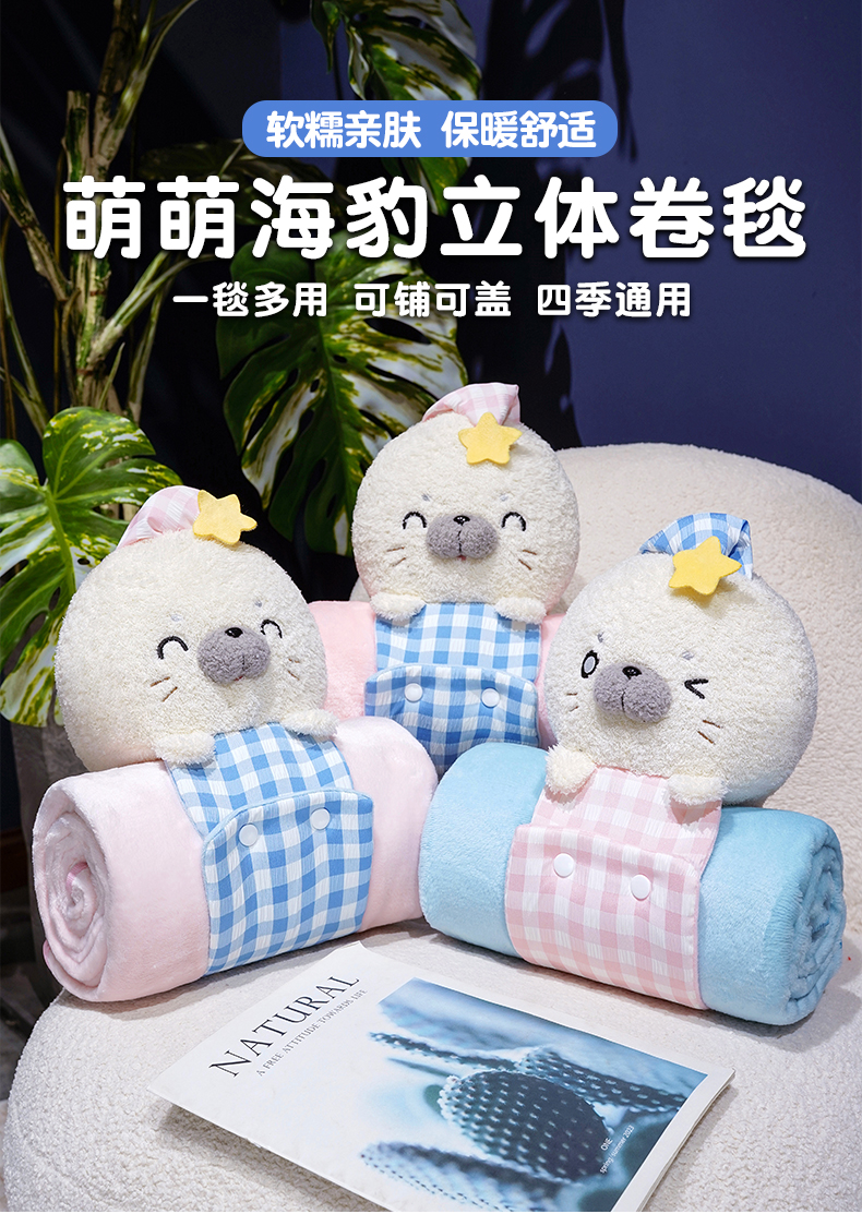 商品名称:仟亿莱 2025新款萌萌海豹立体卷毯 立体笑眼海豹