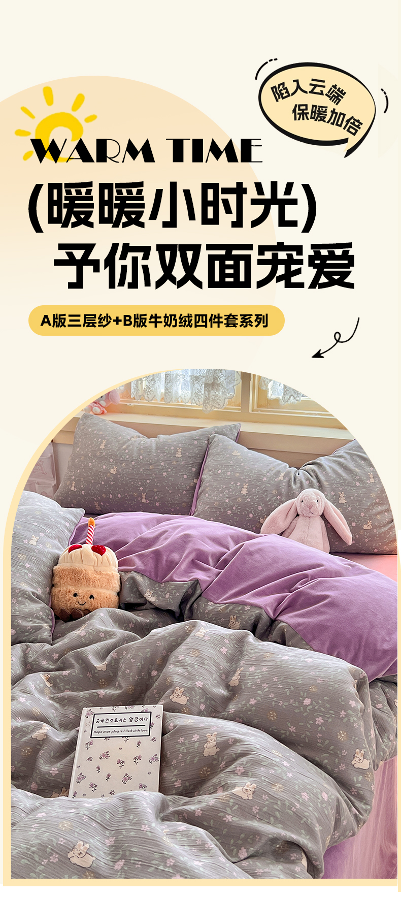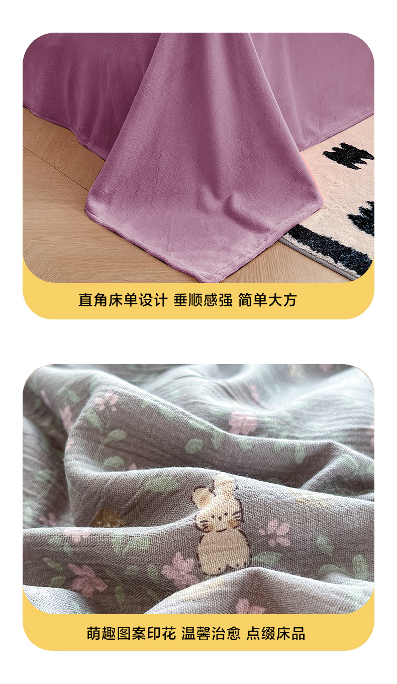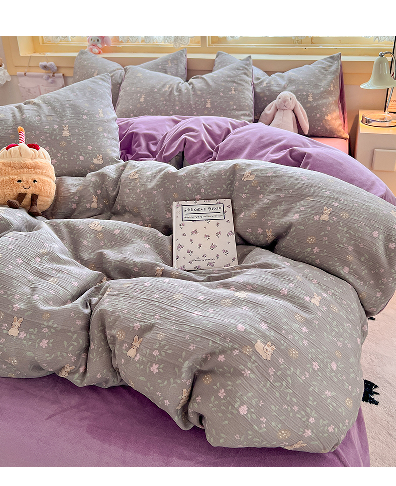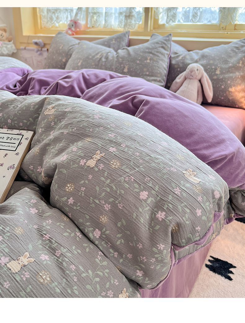 瑞钰 2025新款A版三层纱B版牛奶绒四件套系列 花间兔