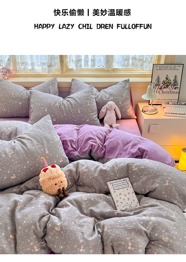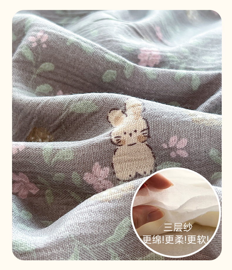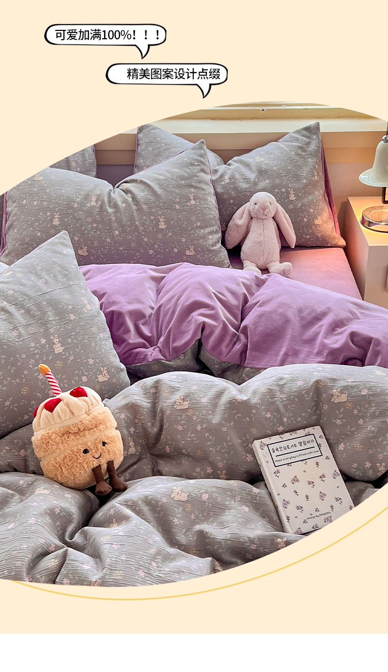商品名称:瑞钰 2025新款A版三层纱B版牛奶绒四件套系列 花间兔