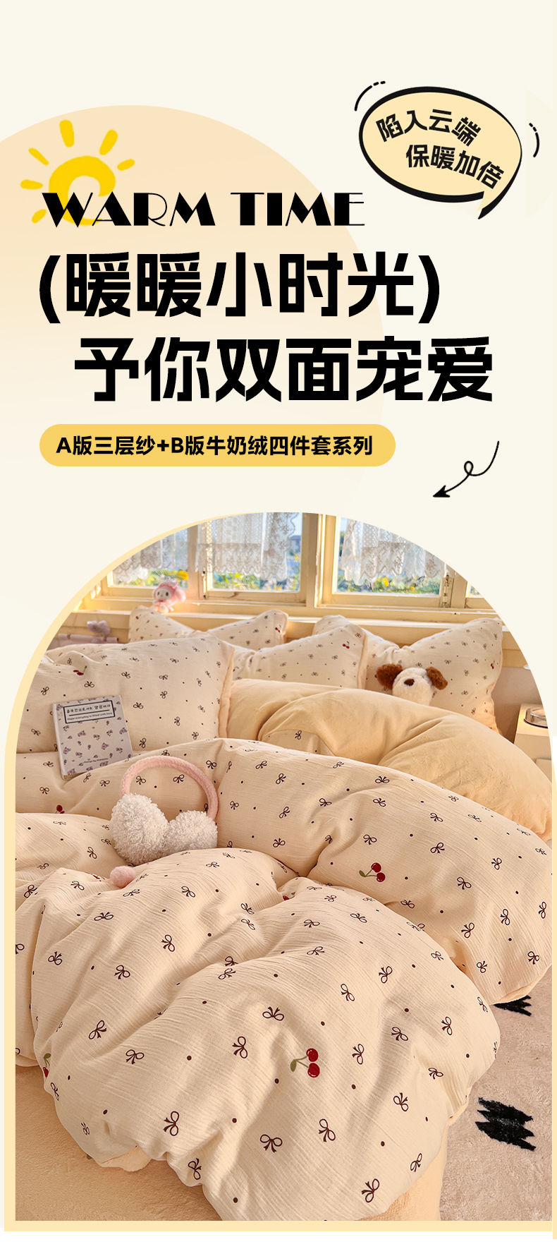 瑞钰 2025新款A版三层纱B版牛奶绒四件套系列 撄桃蝴蝶