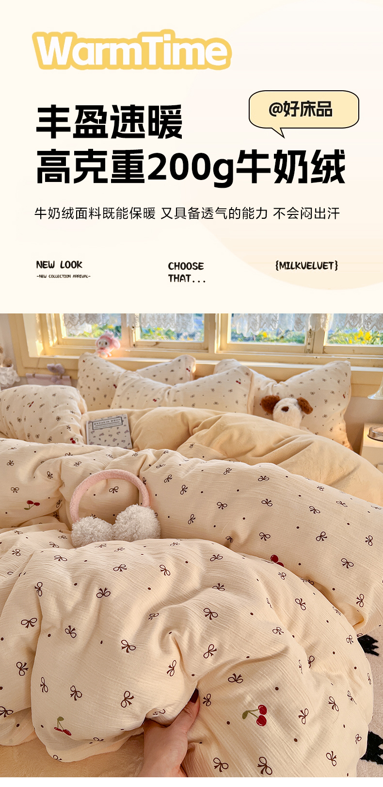 (总)瑞钰 2025新款亲肤保暖牛奶绒四件套,菲菲公主,红格子小美,蓝波点小美,绵绵星星,小木马,小新同学,长帽小狗