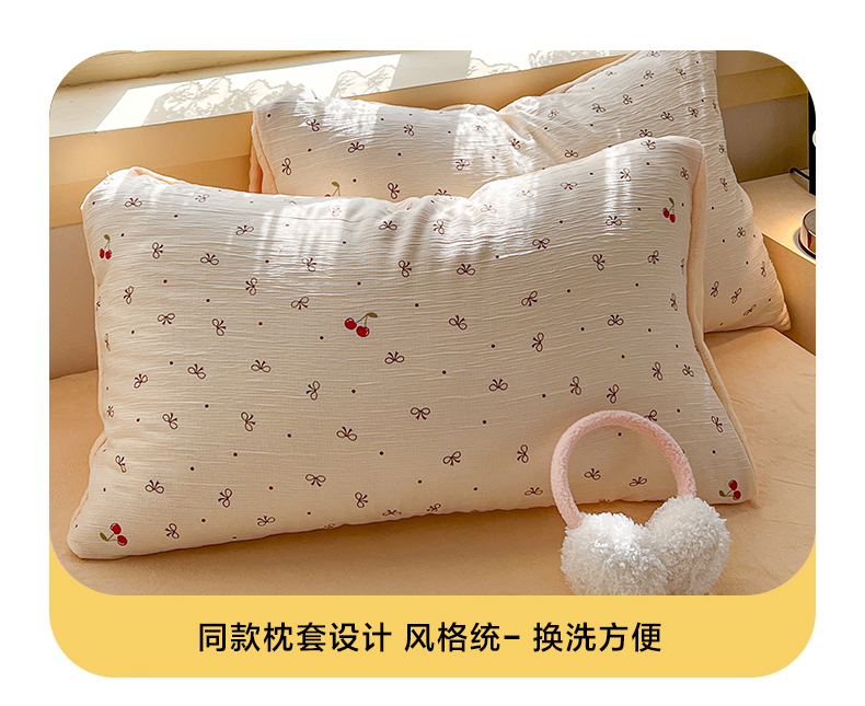 商品名称:瑞钰 2025新款A版三层纱B版牛奶绒四件套系列 撄桃蝴蝶