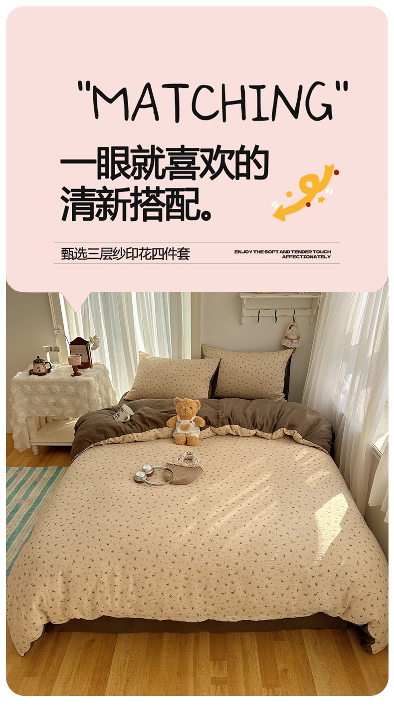 当前位置: 91家纺网 > 商品网购 > 床品套件 > 四件套 > 其它四件套 > 瑞钰 2025新款甄选三层纱印花四件套 莫奈-咖