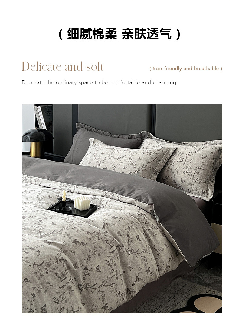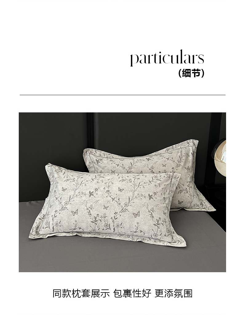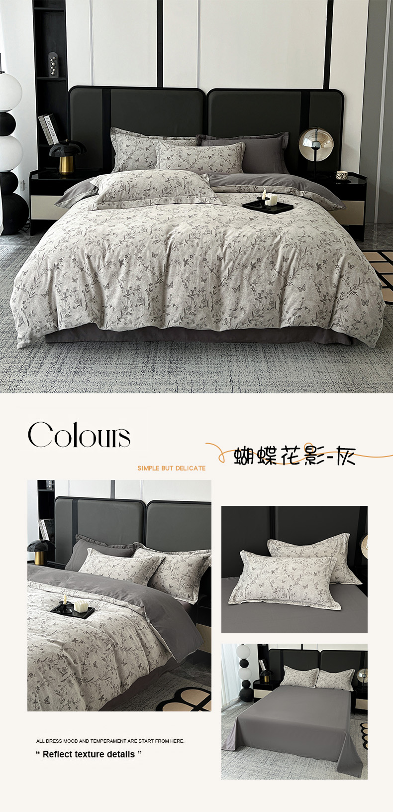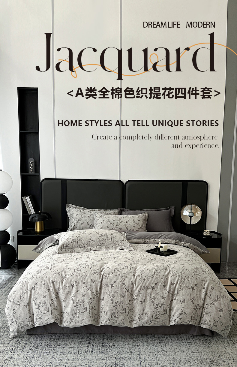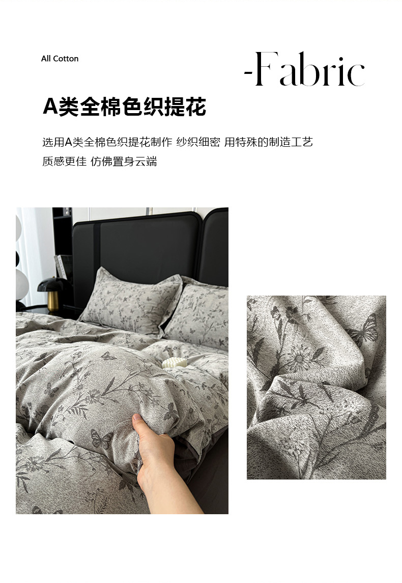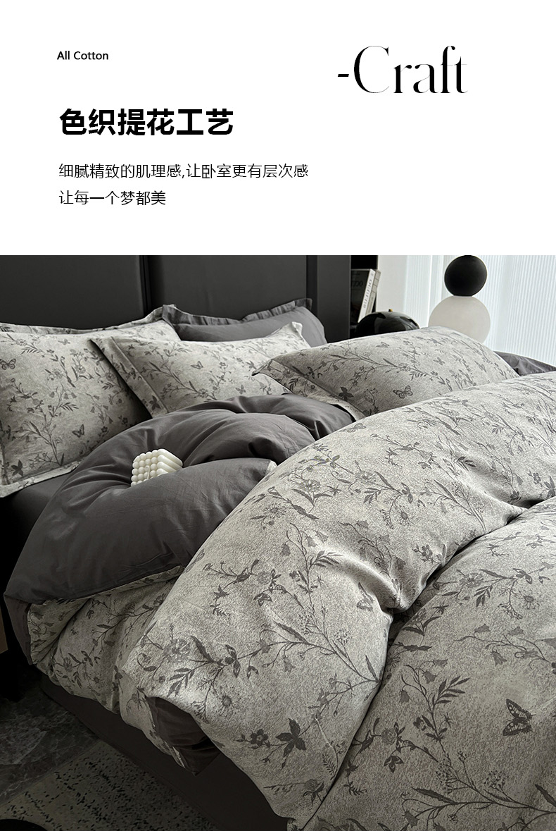 锦彩家居 2025新款A类60支全棉色织提花四件套-复古风系列 蝴蝶花影-灰