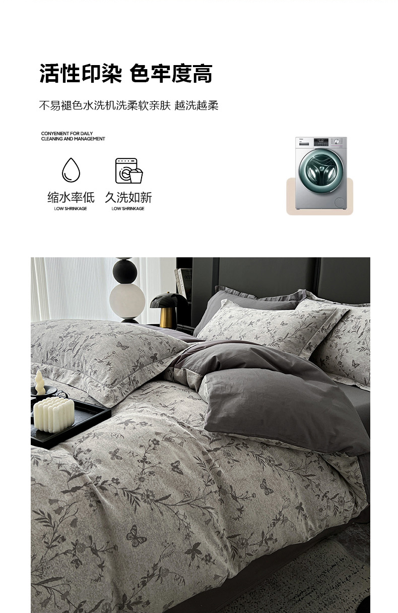 商品名称:锦彩家居 2025新款A类60支全棉色织提花四件套-复古风系列 蝴蝶花影-灰