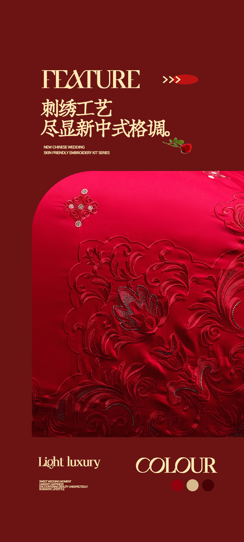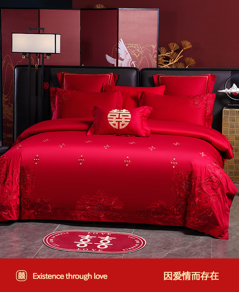当前位置: 91家纺网 > 商品网购 > 床品套件 > 四件套 > 婚庆四件套 > 置顶家纺 2025新款新中式棚拍亲肤棉婚庆大红刺绣系列四件套 盛世婚礼-大红